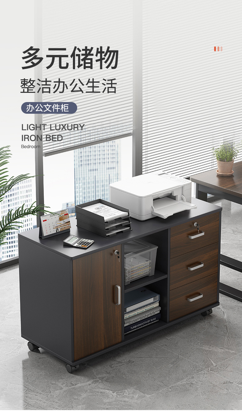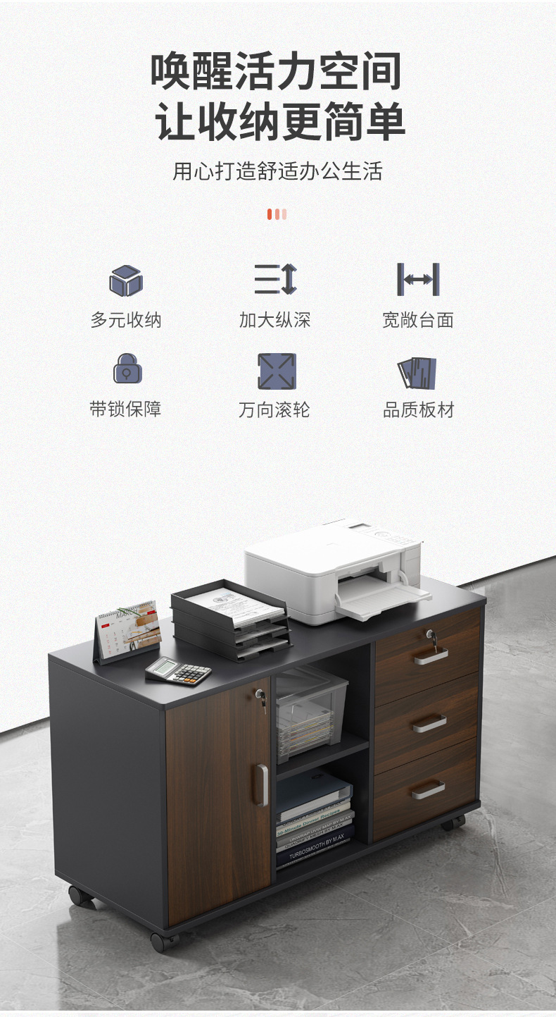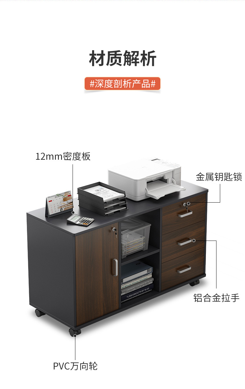 办公室文件柜落地式带锁资料柜子抽屉储物移动收纳档案柜木质矮柜