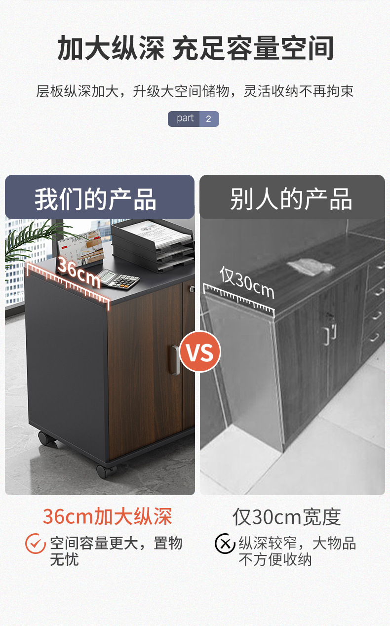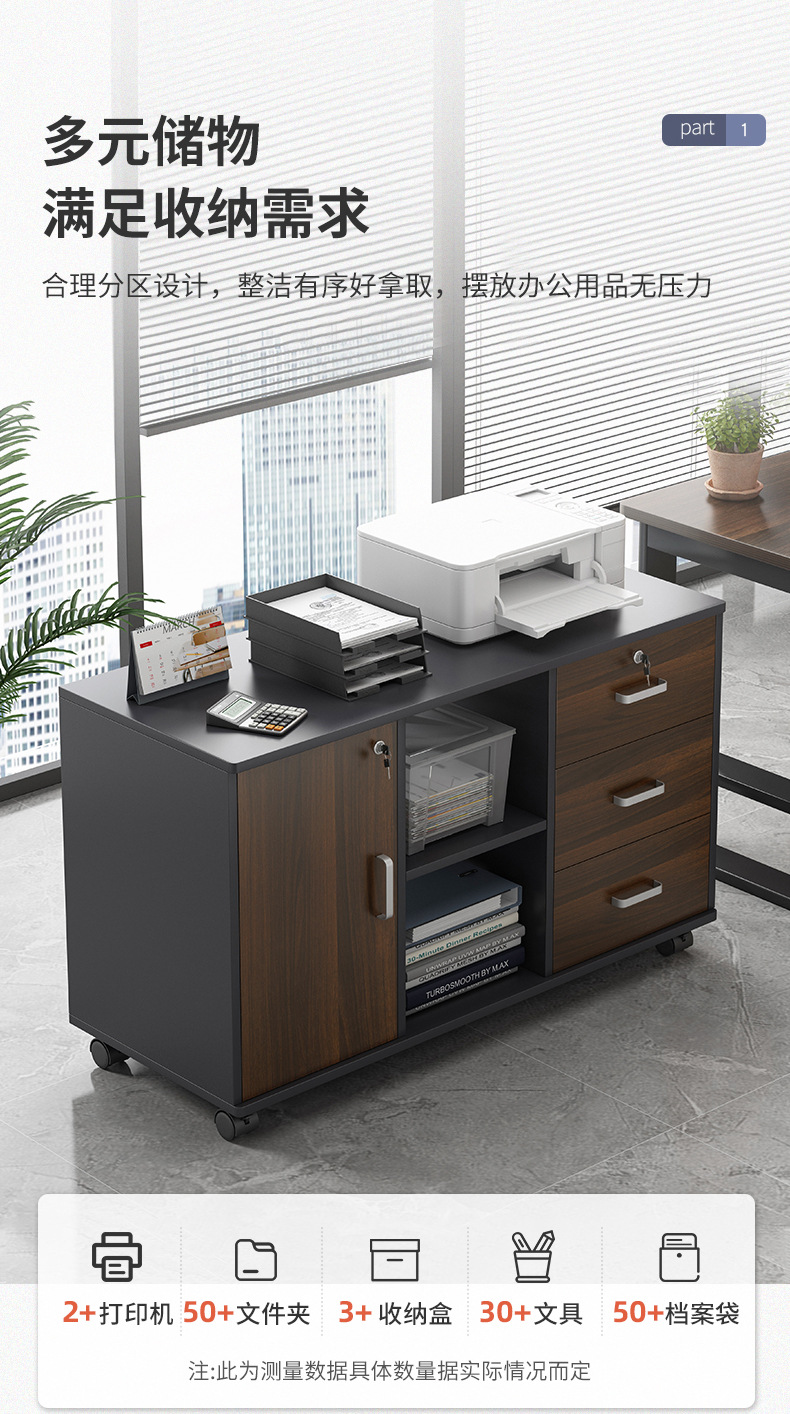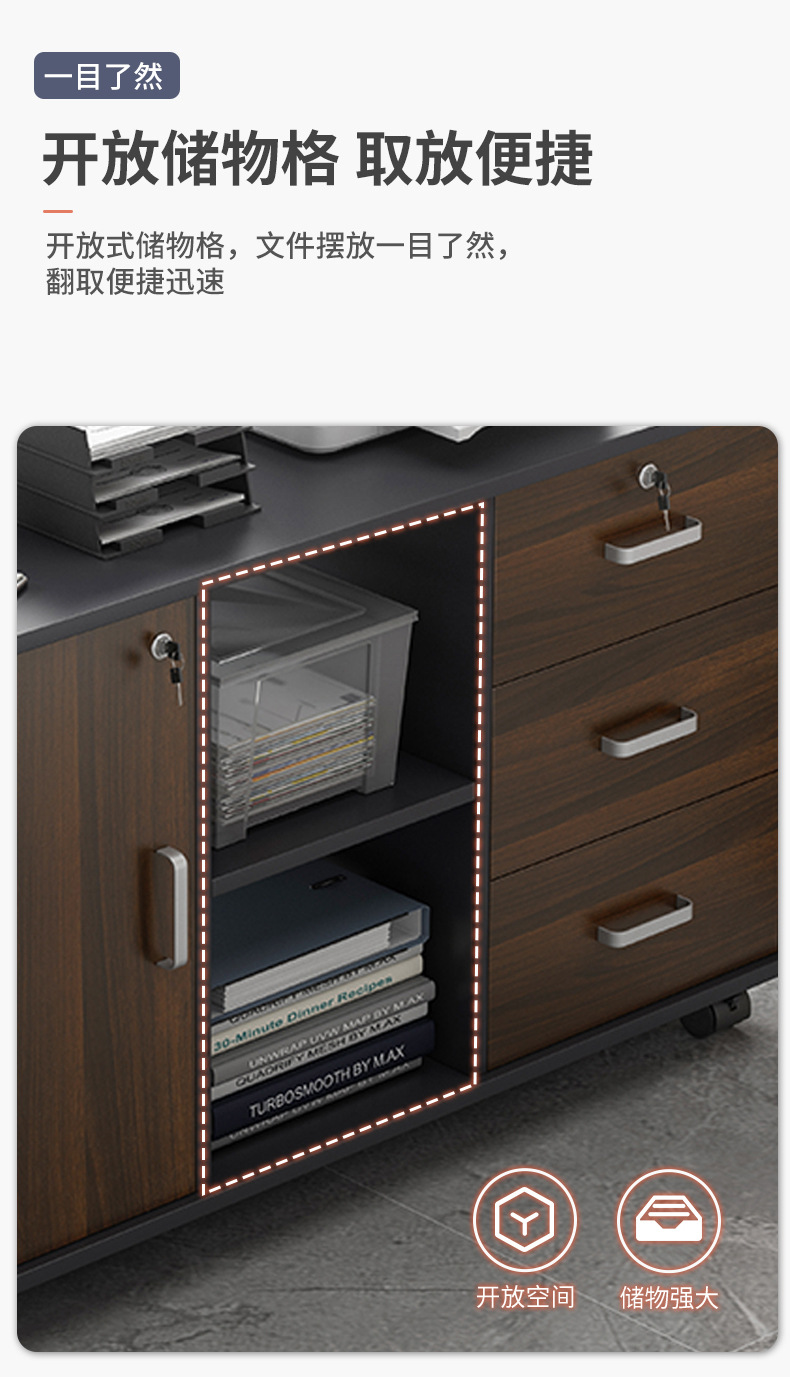 办公室文件柜落地式带锁资料柜子抽屉储物移动收纳档案柜木质矮柜