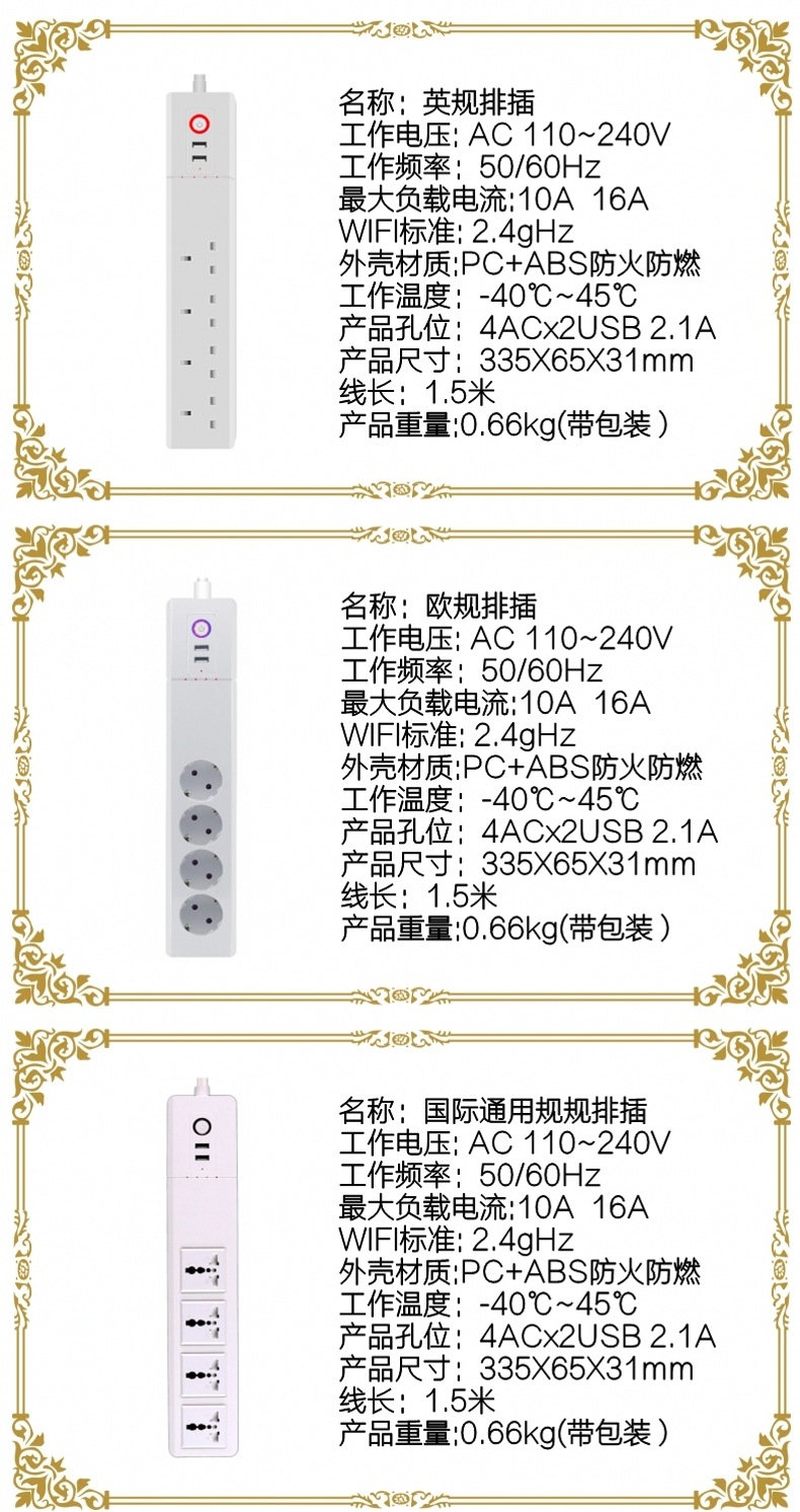 国际通用规Wifi协议16A(6个插孔独立分控)