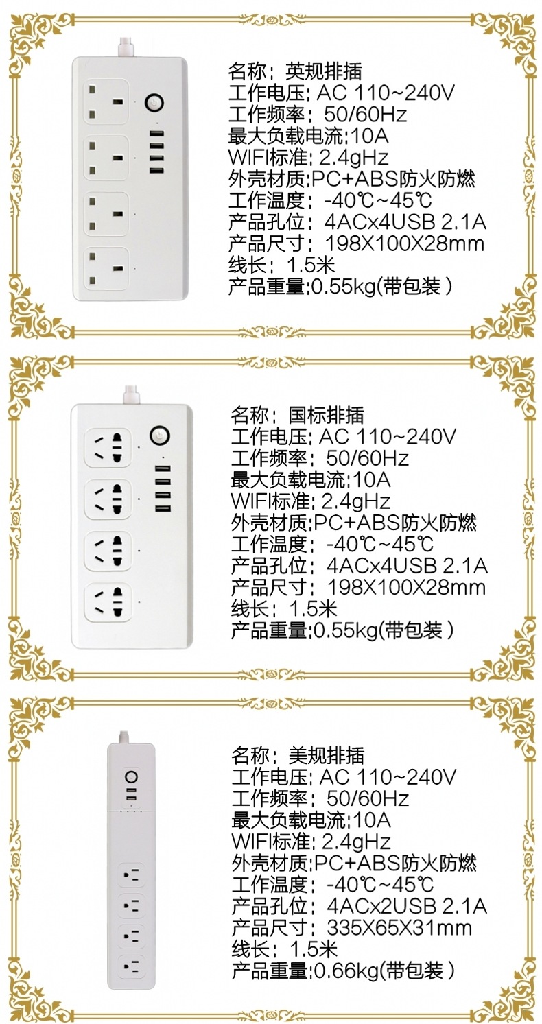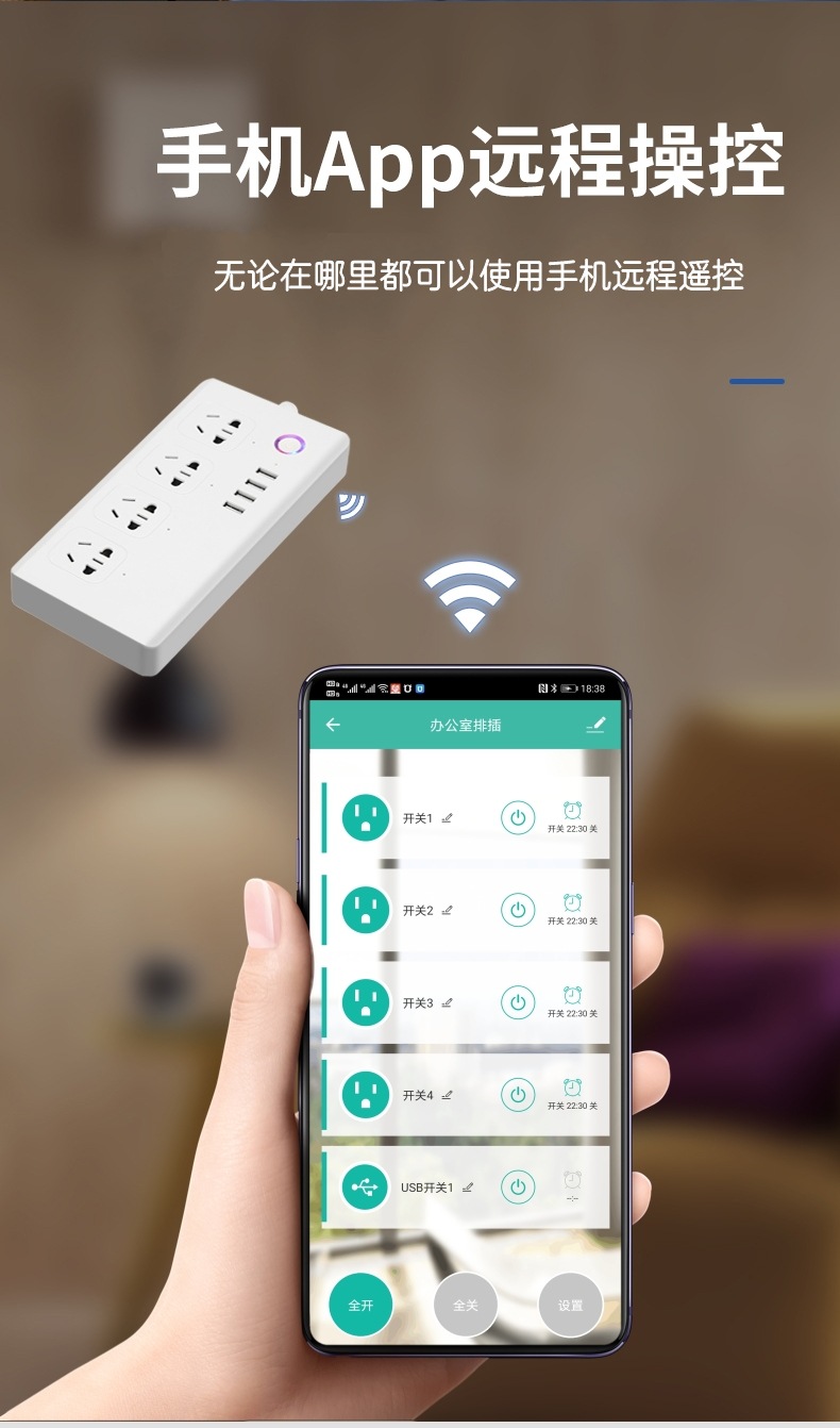 家用办公涂鸦智能Wifi排插手机远程遥控定时开关插座语音控制插排