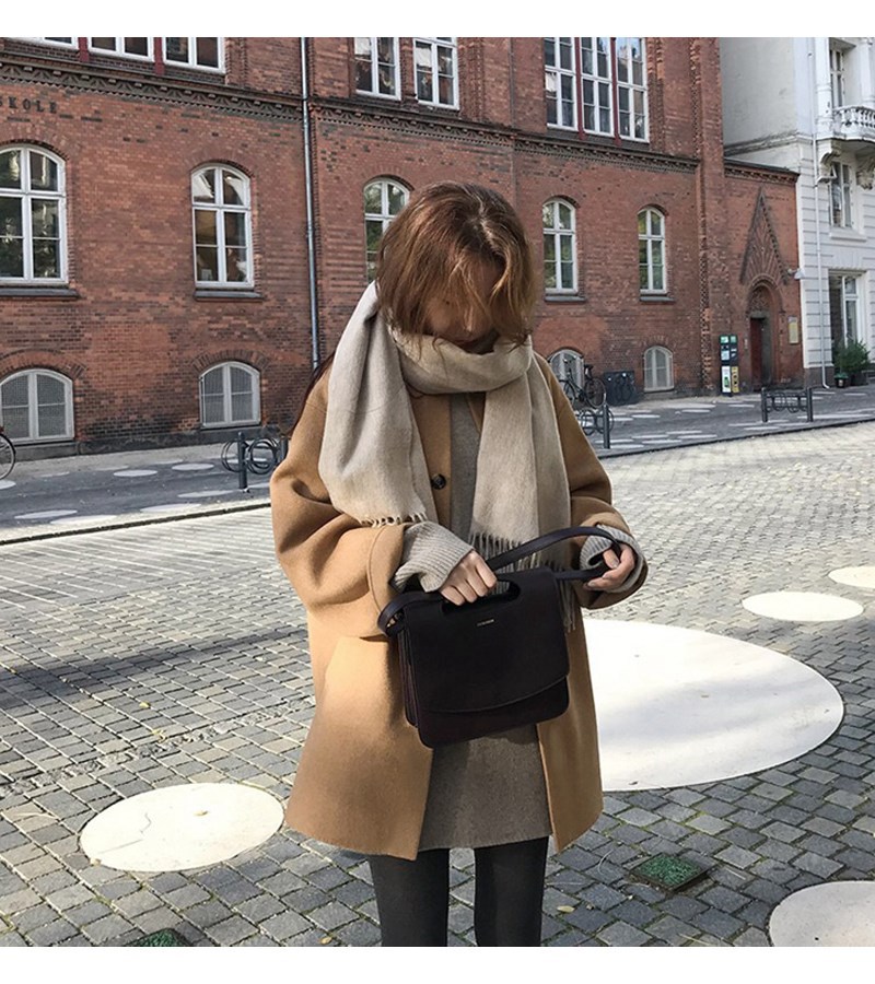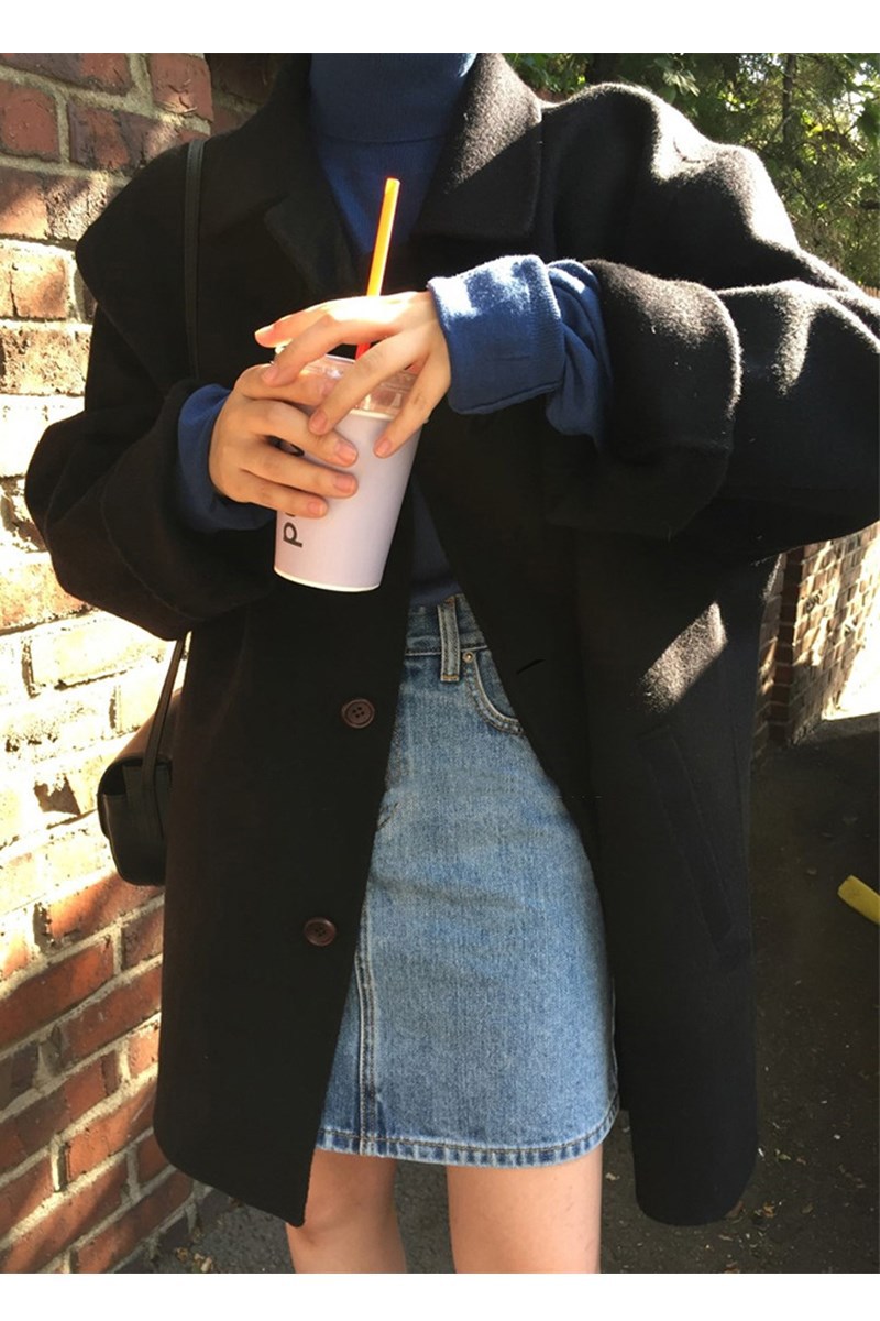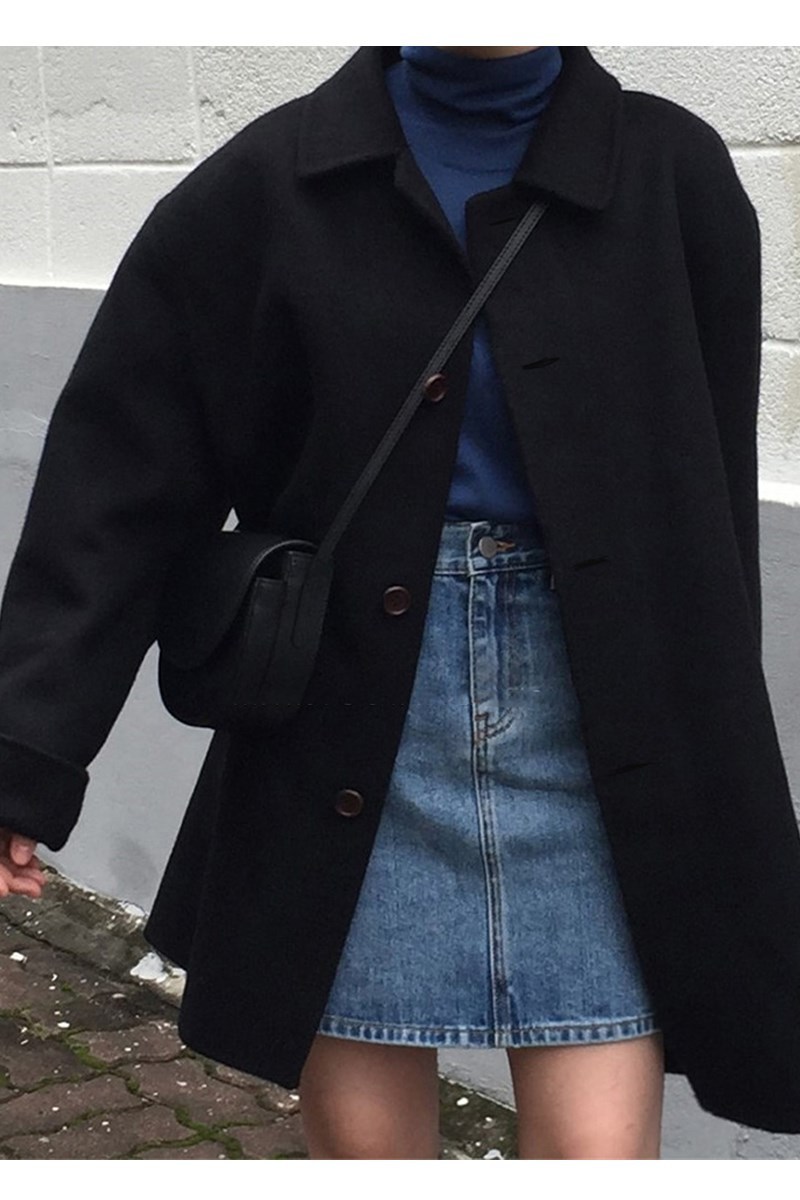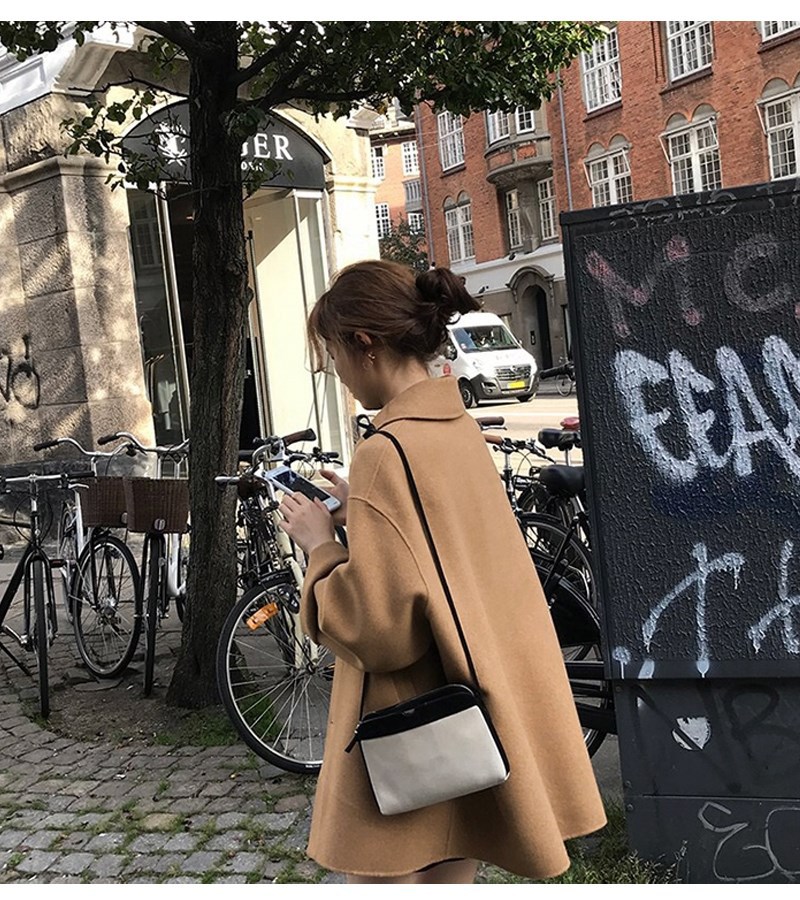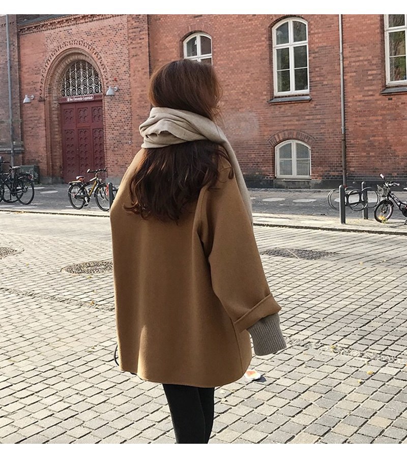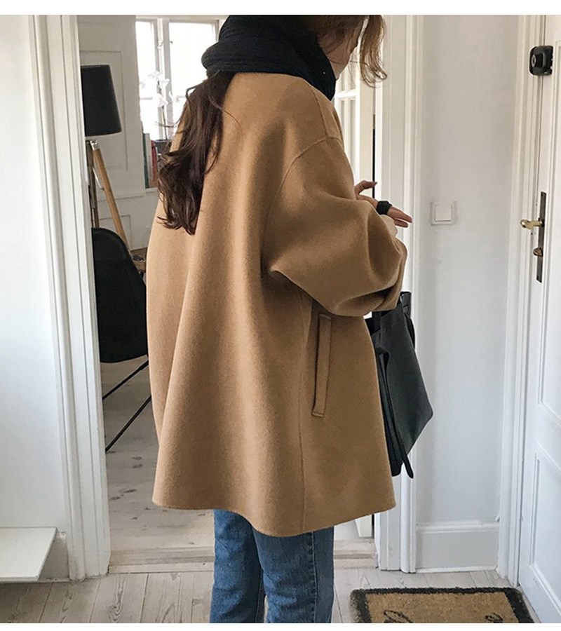 2024年秋冬通勤开衫修身圆领毛呢大衣呢子大衣茧型排扣保暖上衣