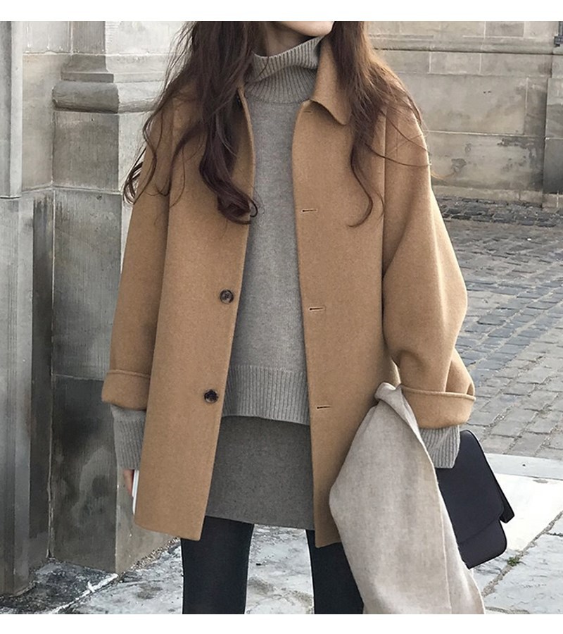 毛呢大衣女2025短款秋冬小个子宽松外搭女装西装领毛呢子外套潮流