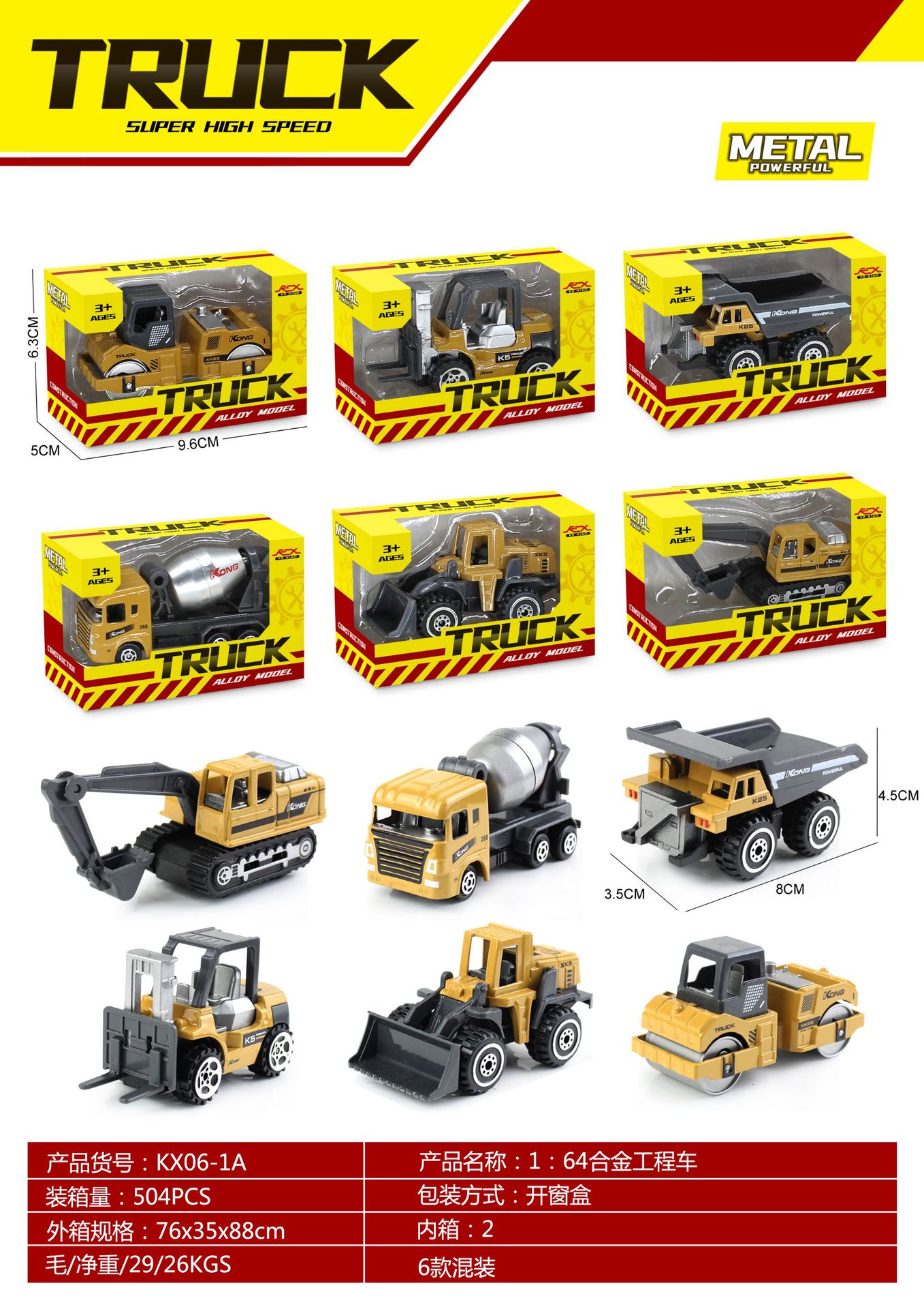 1:64仿真合金工程车模型滑行玩具车金属小汽车儿童礼物单个彩盒装