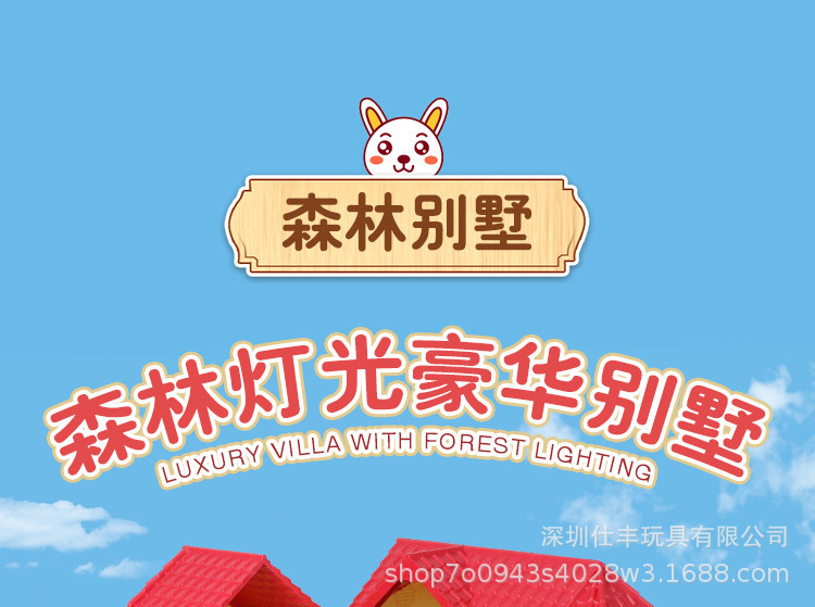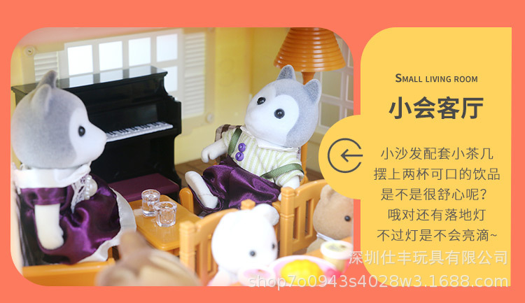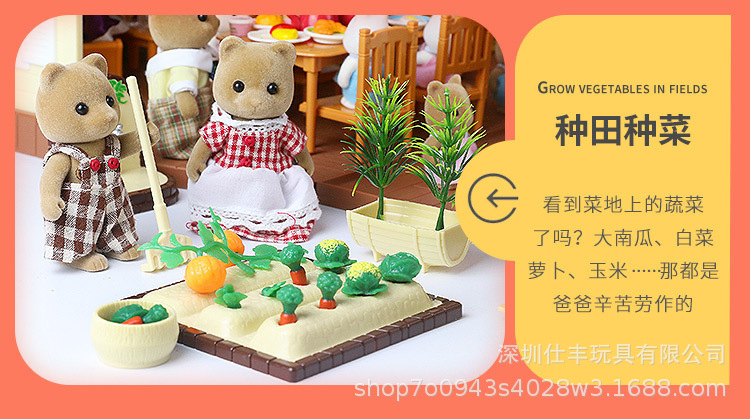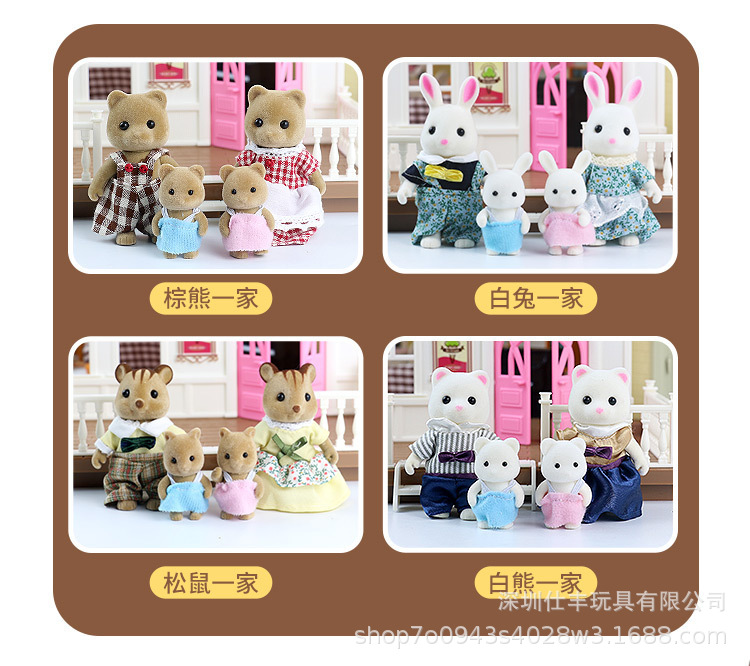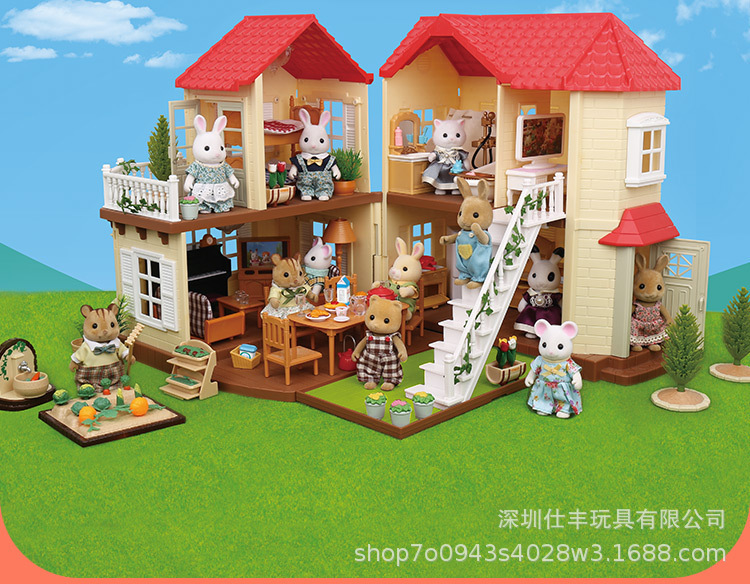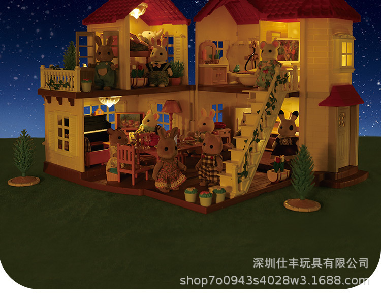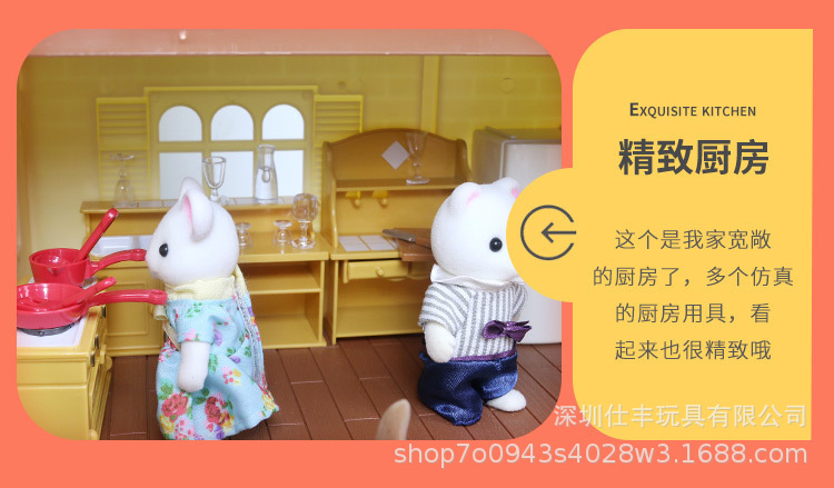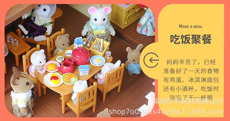儿童过家家森林家族灯光别墅 动物之家迷你兔娃娃屋 厨房拼装玩具