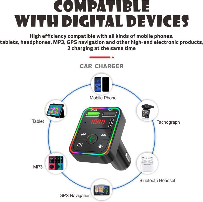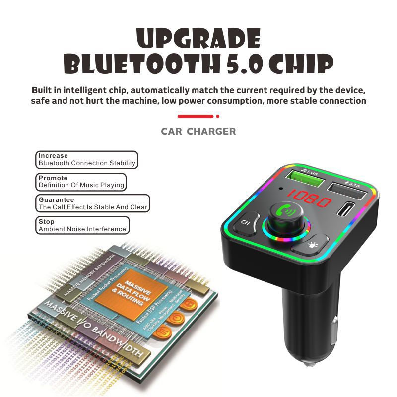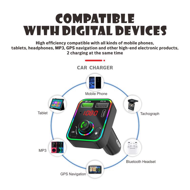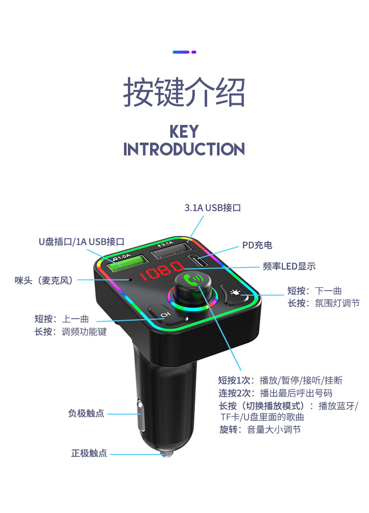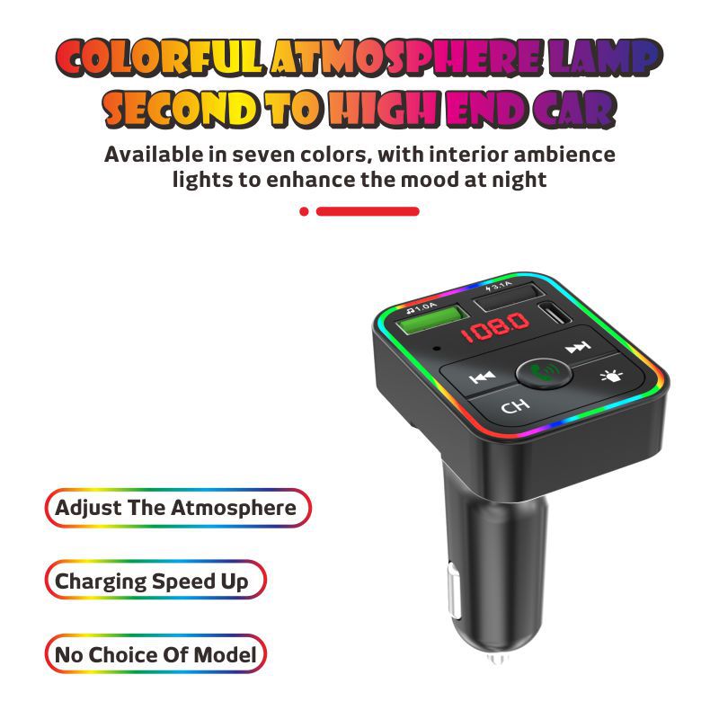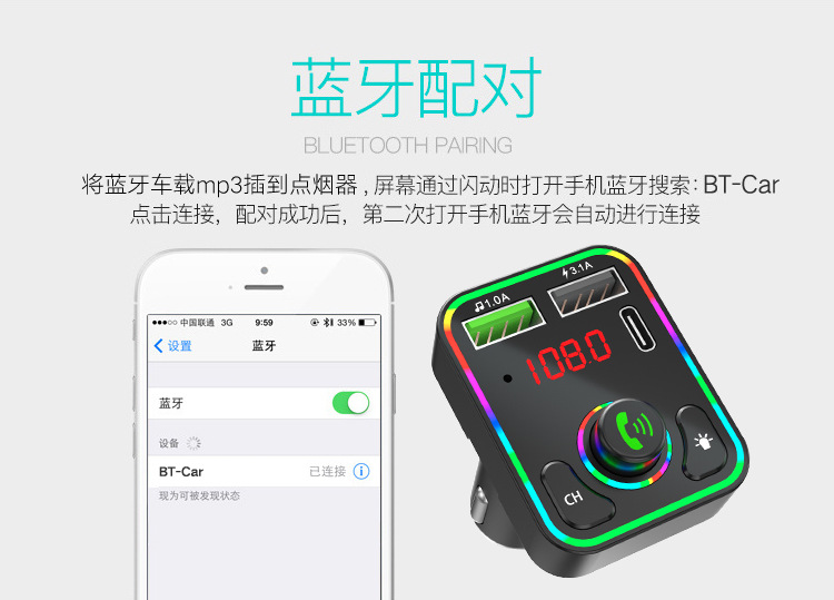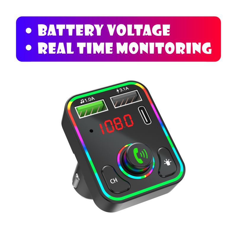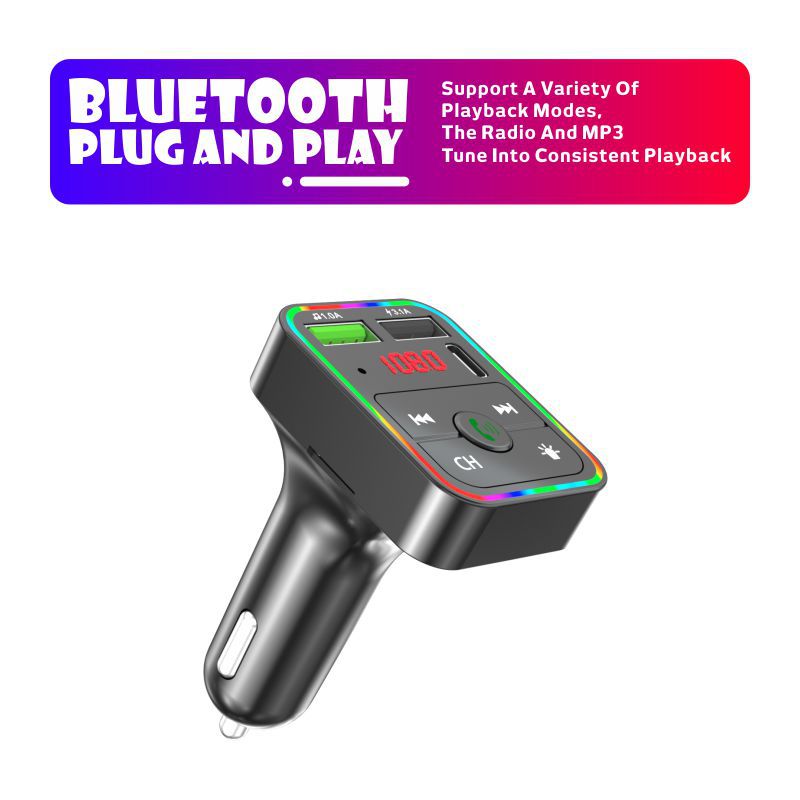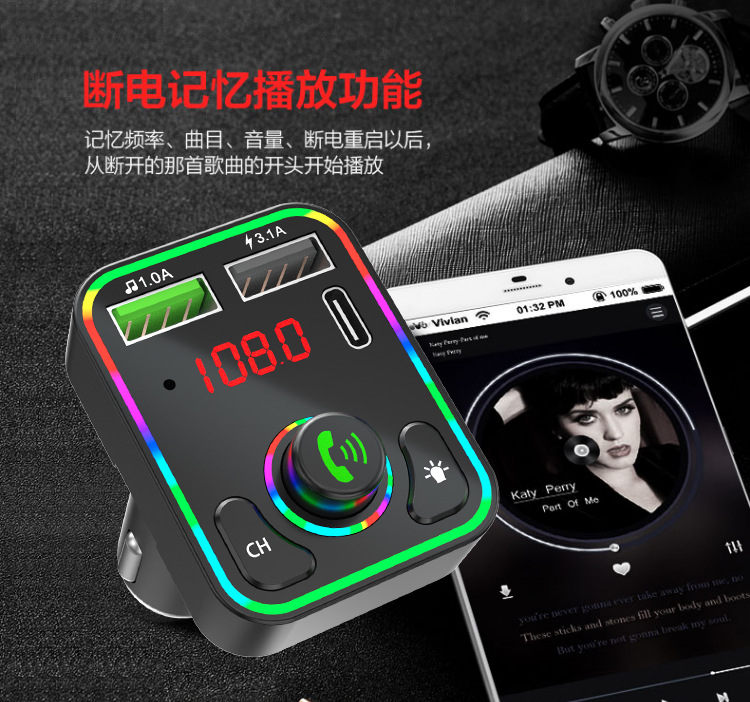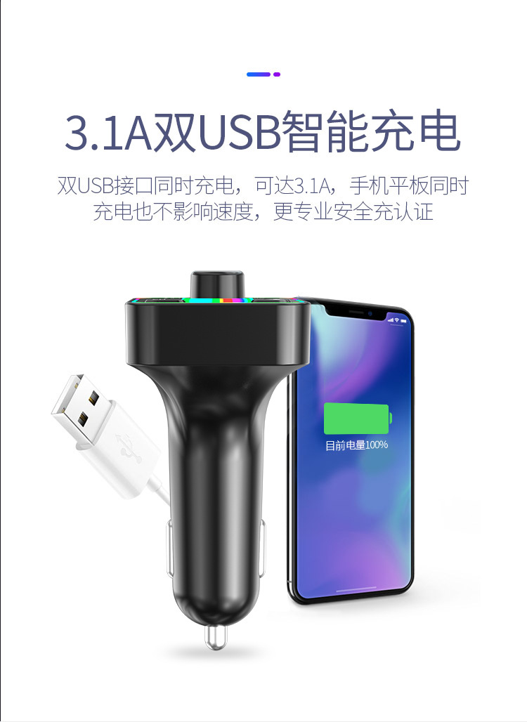 F3车载蓝牙MP3播放器免提氛围灯PD快充适用华为三星小米智能影音