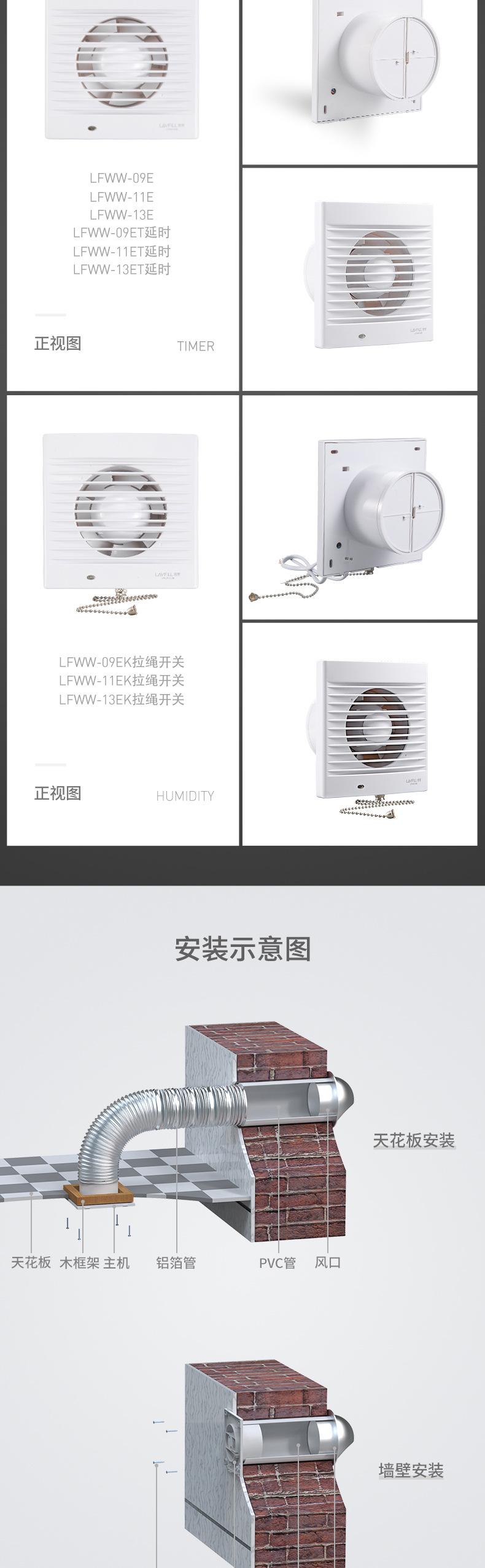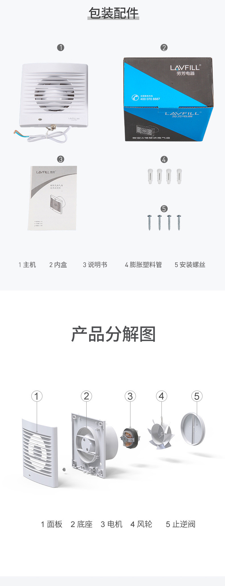 LAVFILL劳芳家用橱窗式排风扇酒店玻璃窗排气扇浴室换气扇