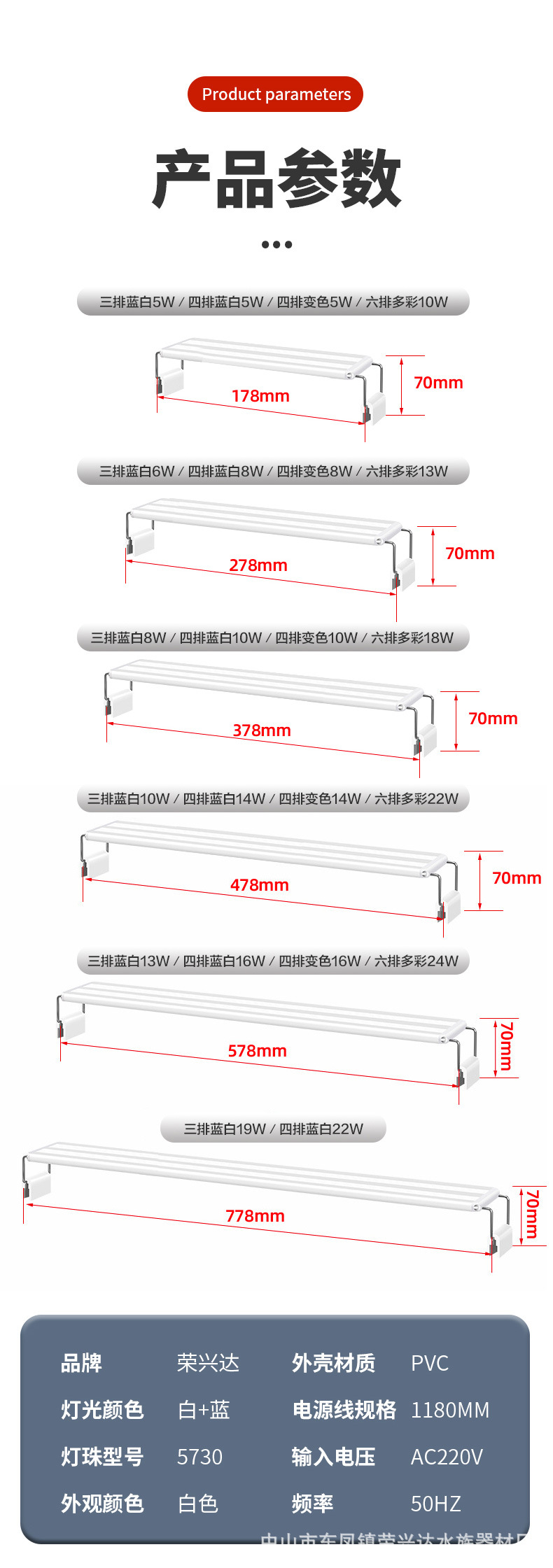 led鱼缸灯 水陆两用 水族LED潜水灯 水族箱照明缸盖灯