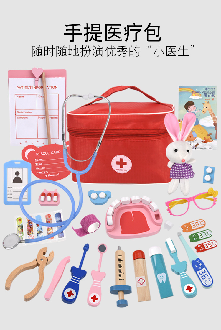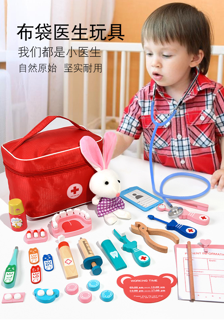 儿童木质仿真布袋医药箱0.63宝宝男女孩过家家医生打针玩具礼物