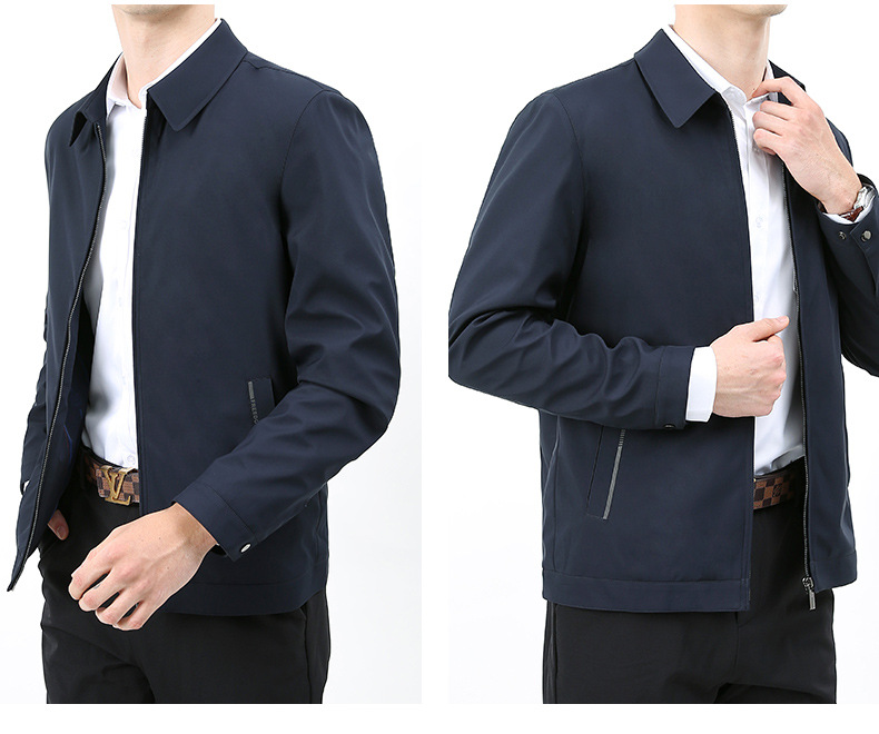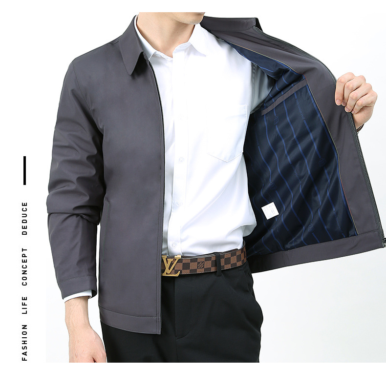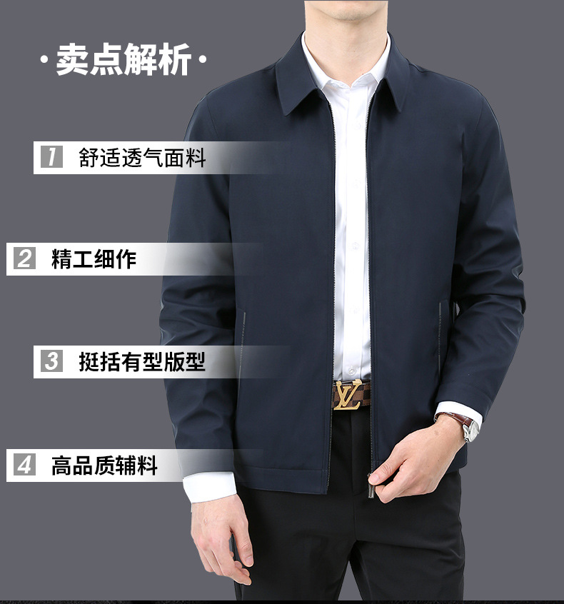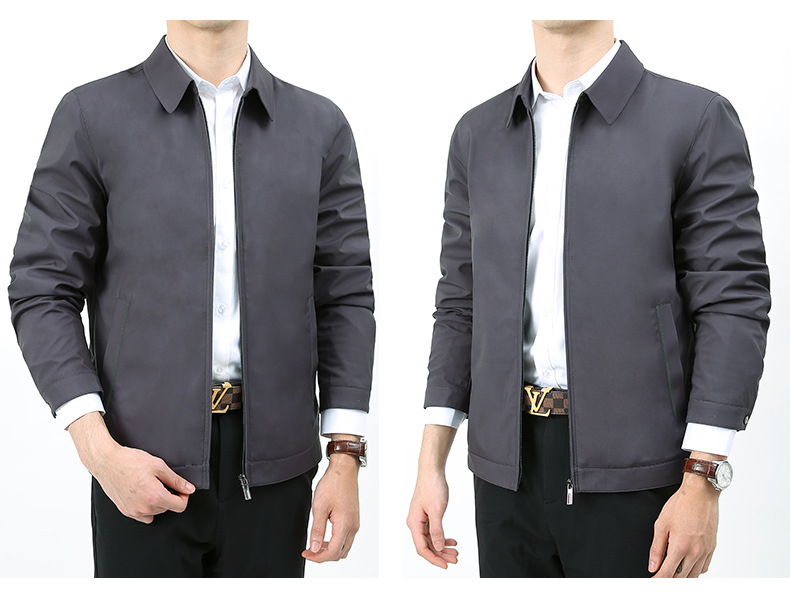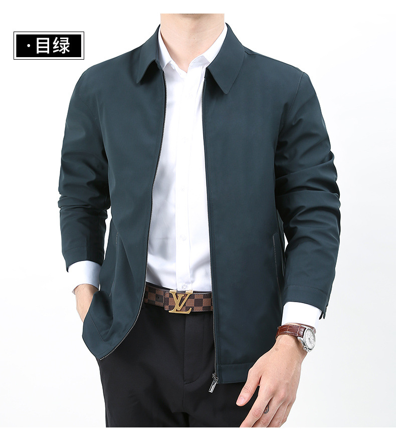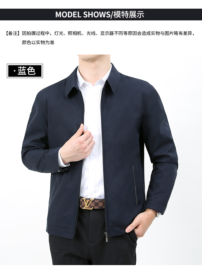 新款爸爸外套男中老年爷爷翻领薄款夹克春秋商务休闲装简约上衣装