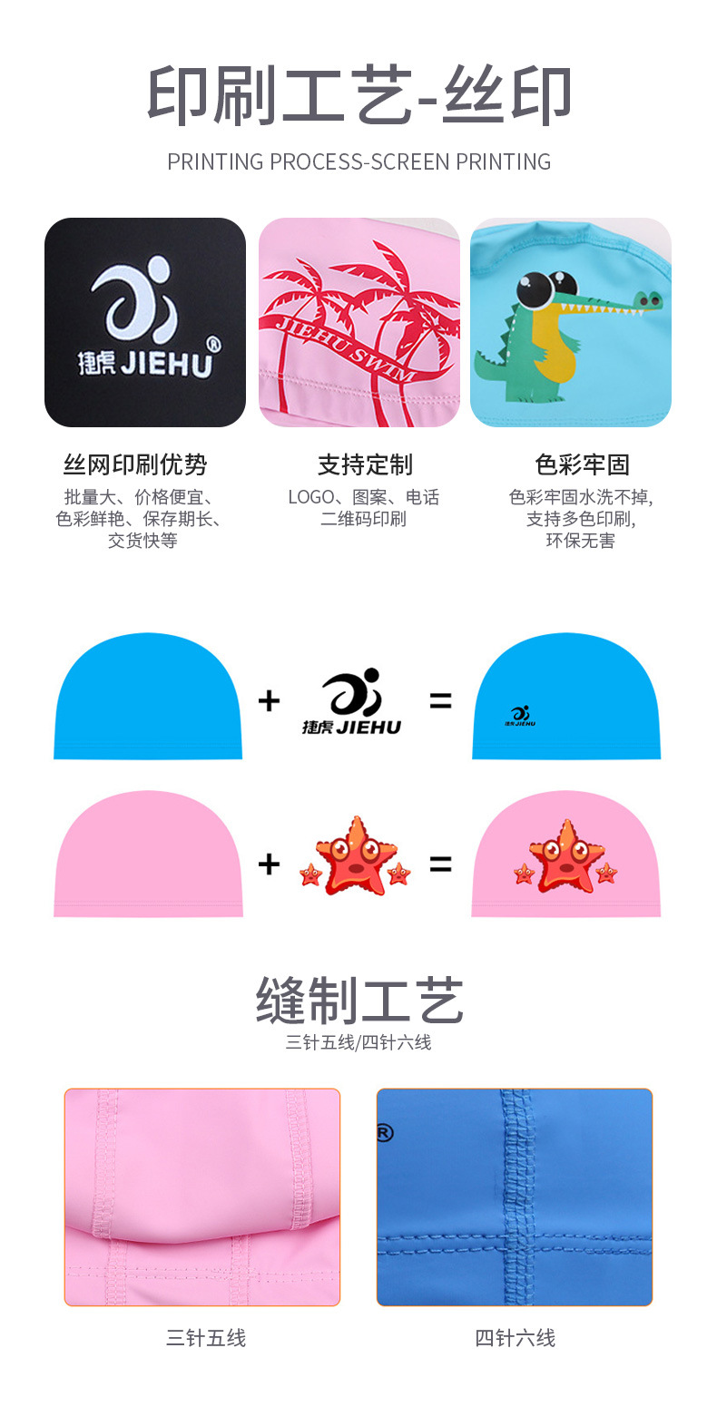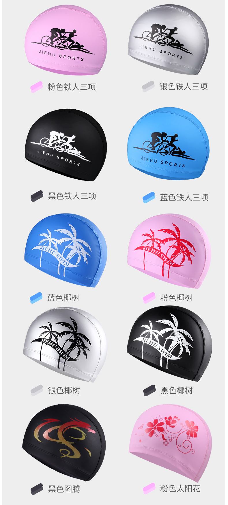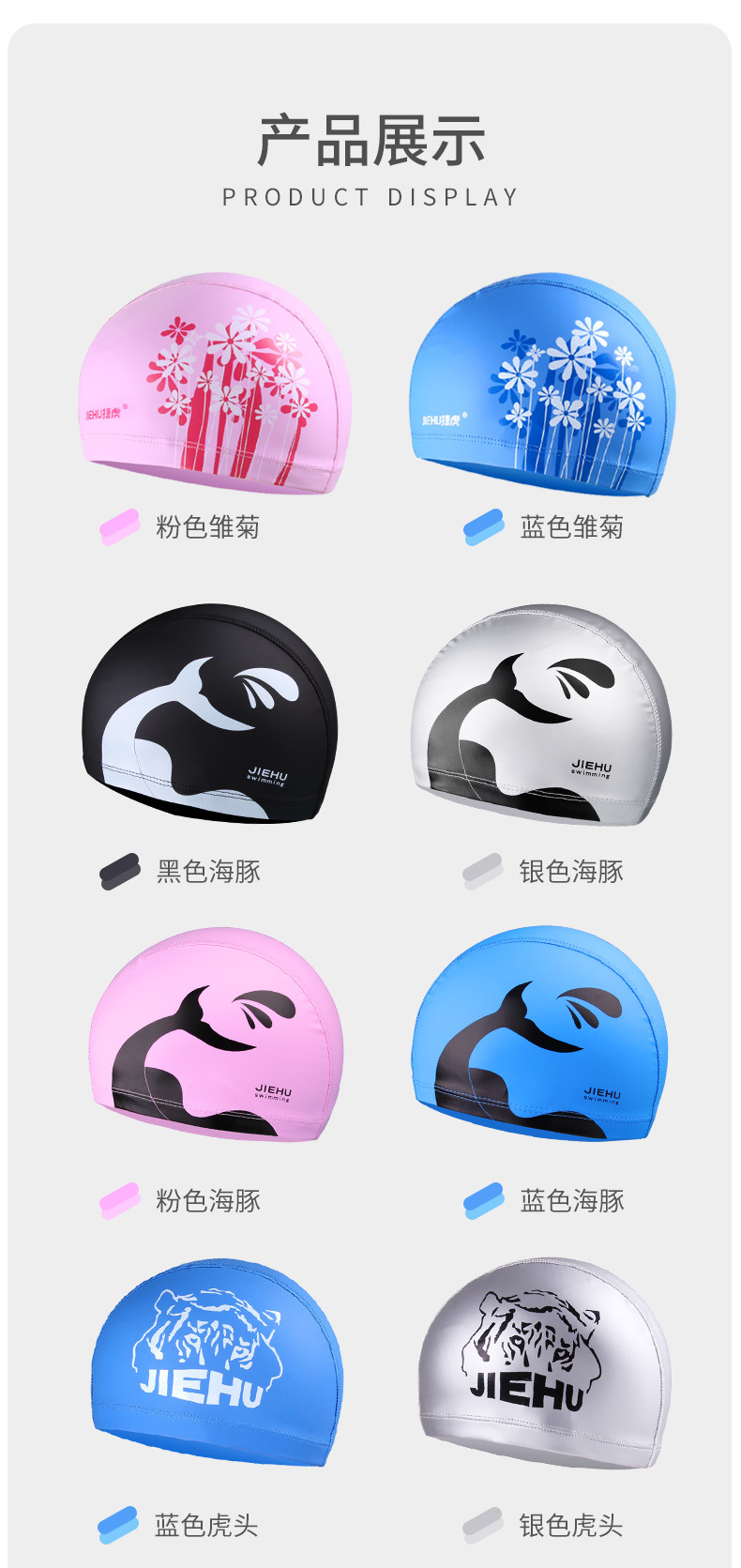捷虎专业印制PU涂层泳帽防水舒适不勒头防晒男女护发加大游泳帽