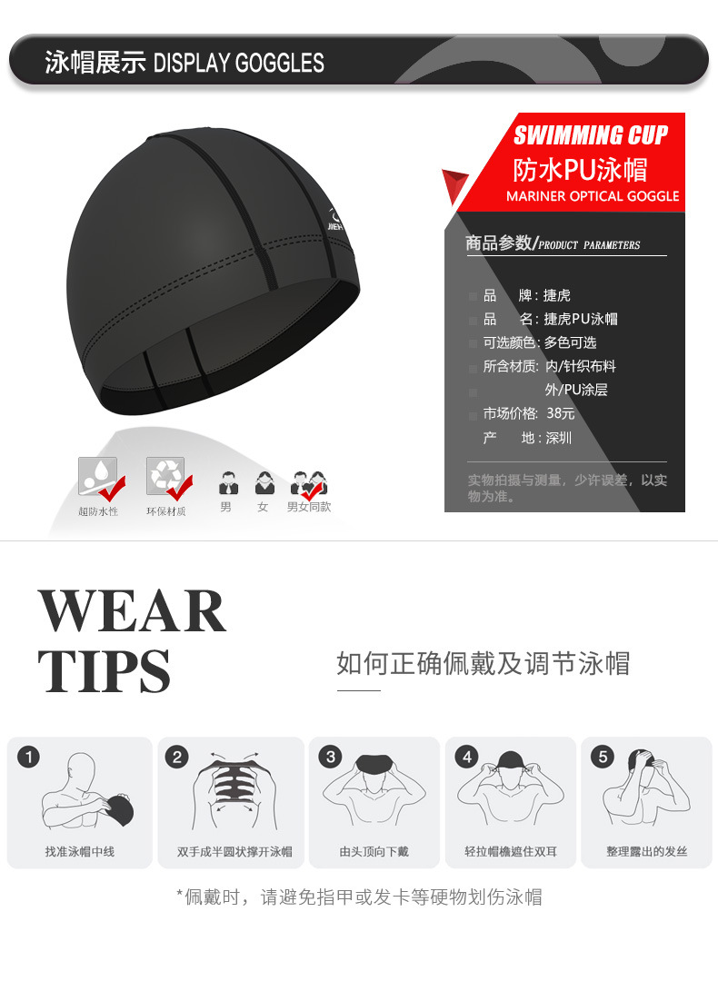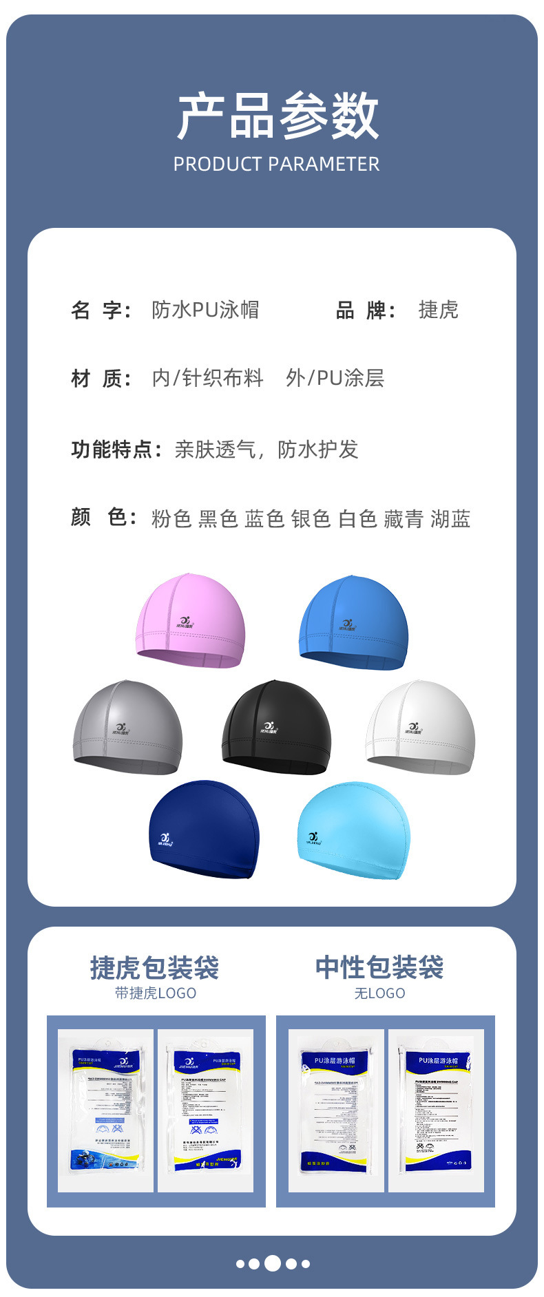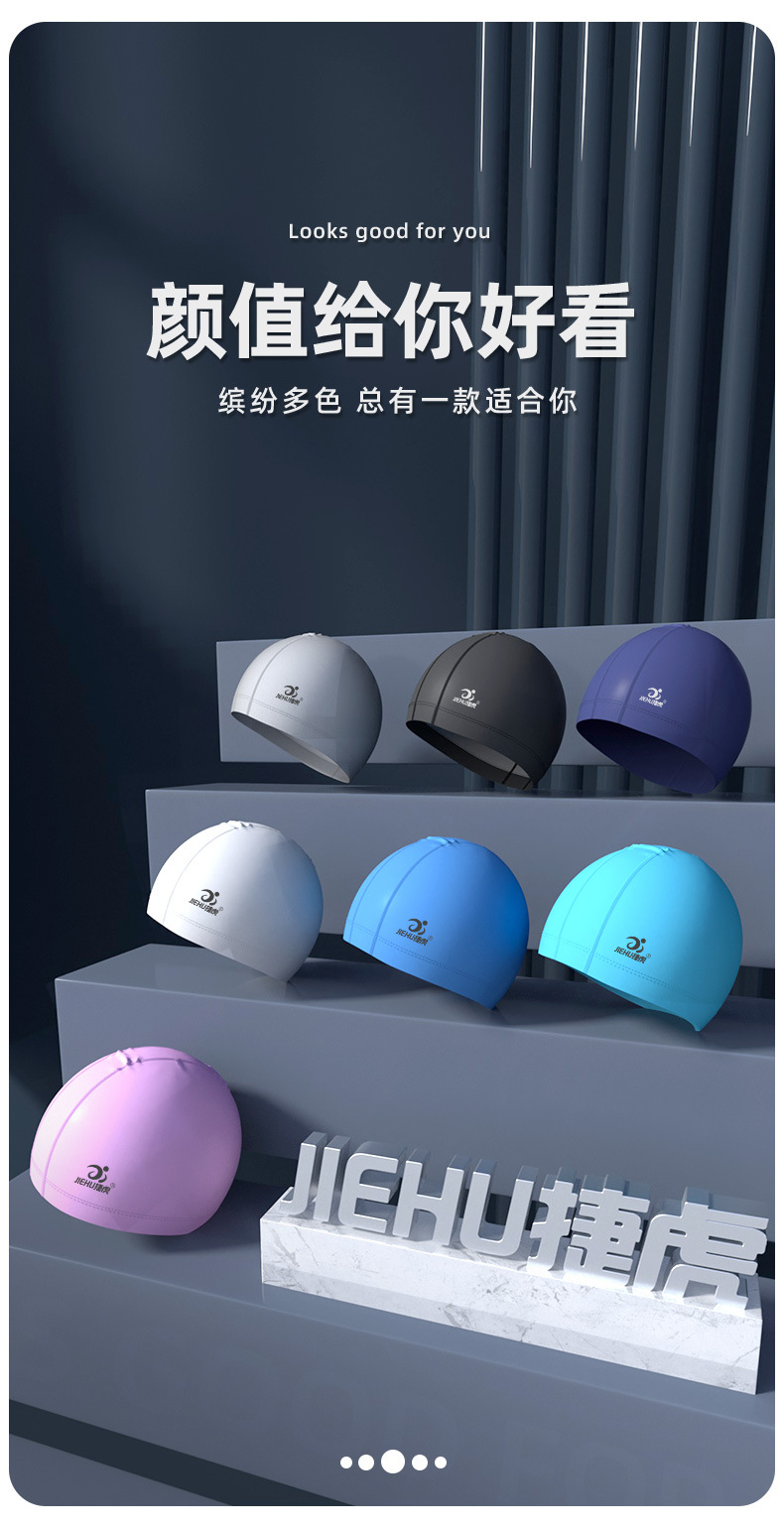 捷虎专业印制PU涂层泳帽防水舒适不勒头防晒男女护发加大游泳帽