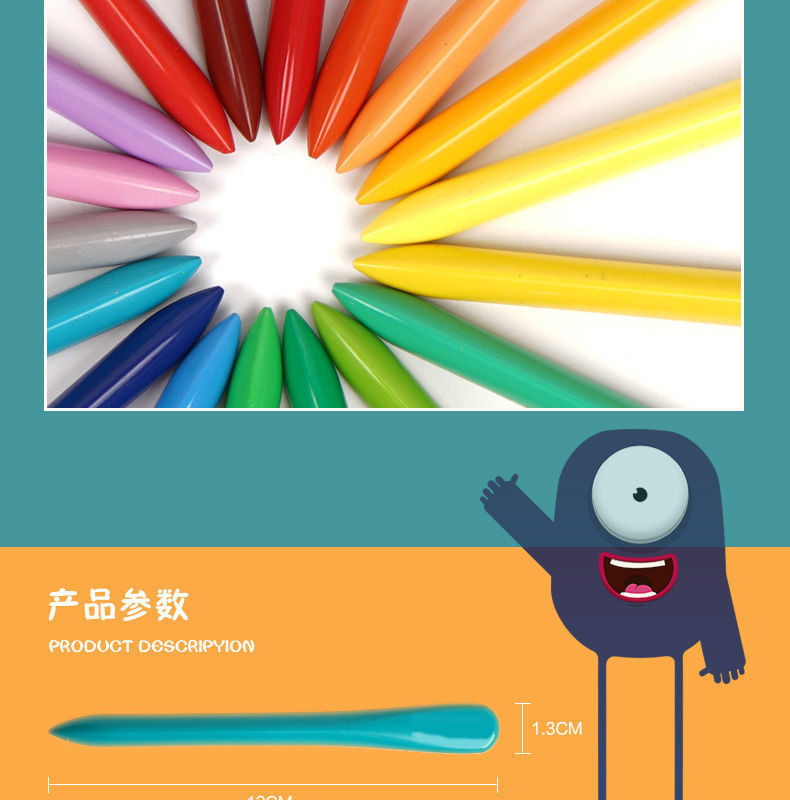 潮温不脏手塑料蜡笔12色绘画24色36色彩绘造型花生蜡笔宝宝涂鸦笔
