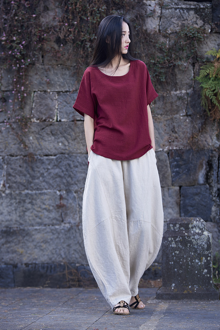 25冬季苎麻炒色做旧加绒加厚灯笼裤棉麻女装新品打坐禅修长裤棉裤