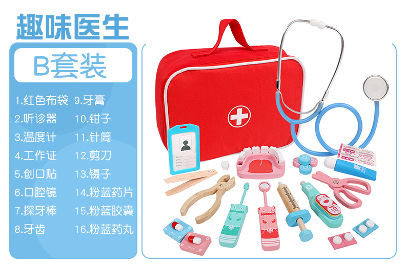 儿童木制质仿真医生打针玩具仿真布袋医药箱宝宝男女孩过家家礼物