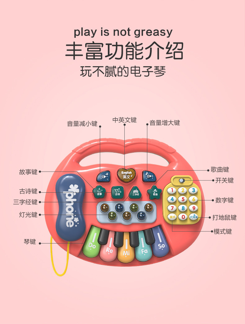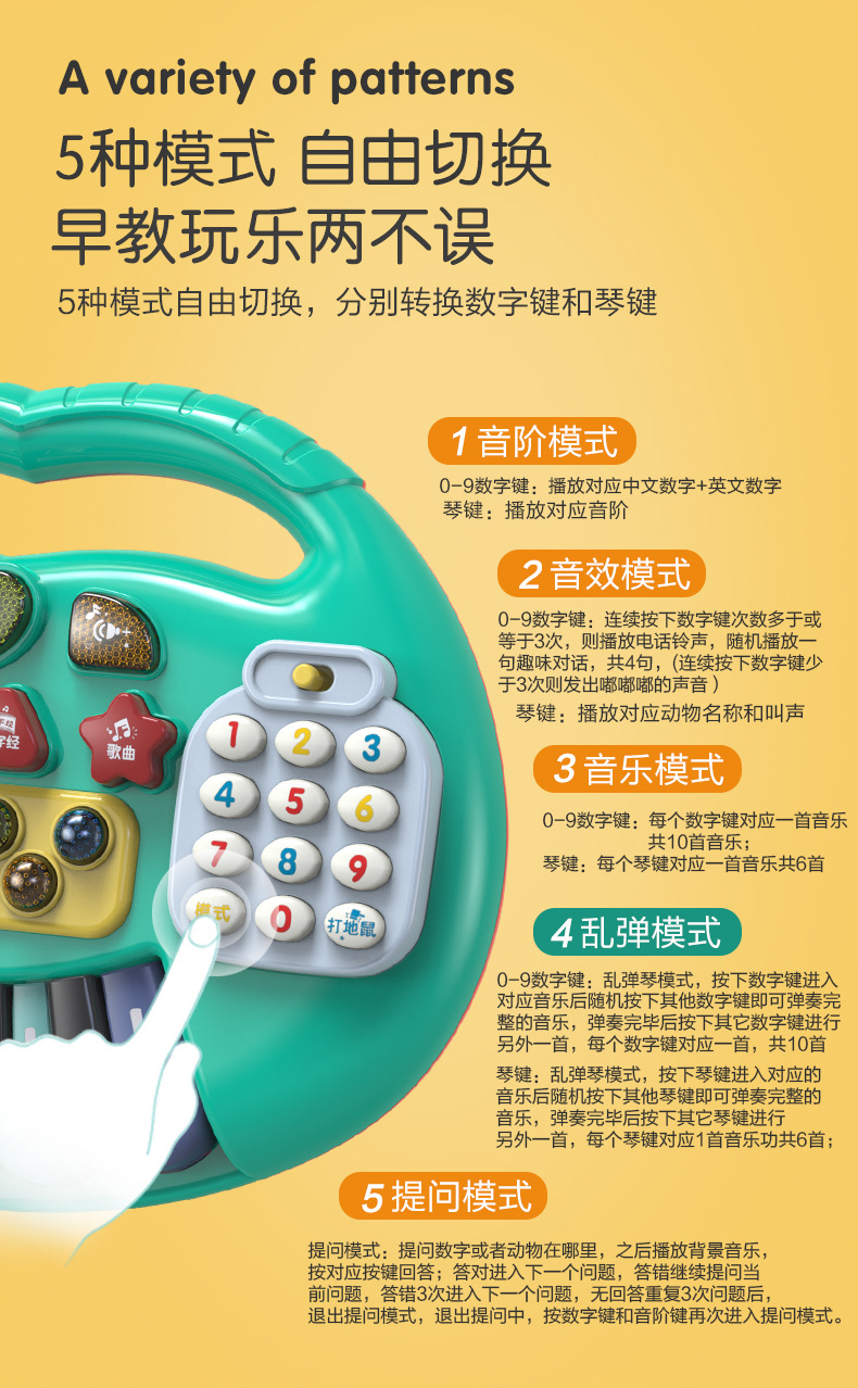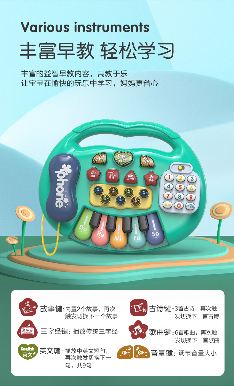 婴幼儿启蒙早教电子琴乐器打地鼠英文古诗数字游戏多功能儿童玩具