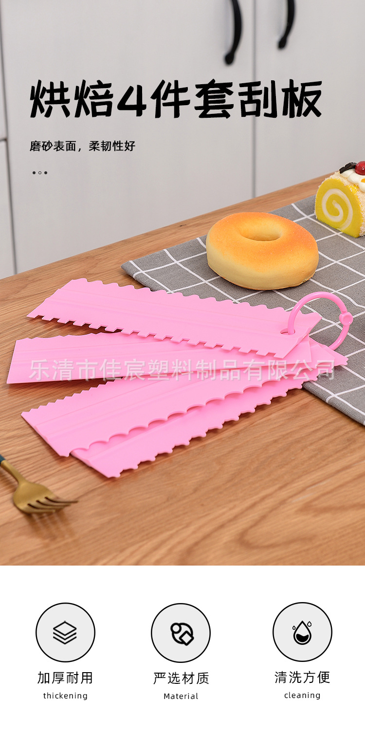 厨房烘焙4件套奶油塑料刮板 蛋糕花边造型装饰工具双面齿刮刀刮板