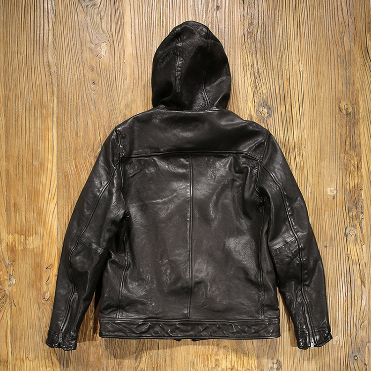 直拉连帽休闲真皮卫衣男时尚运动休闲全植鞣水洗绵羊皮皮衣