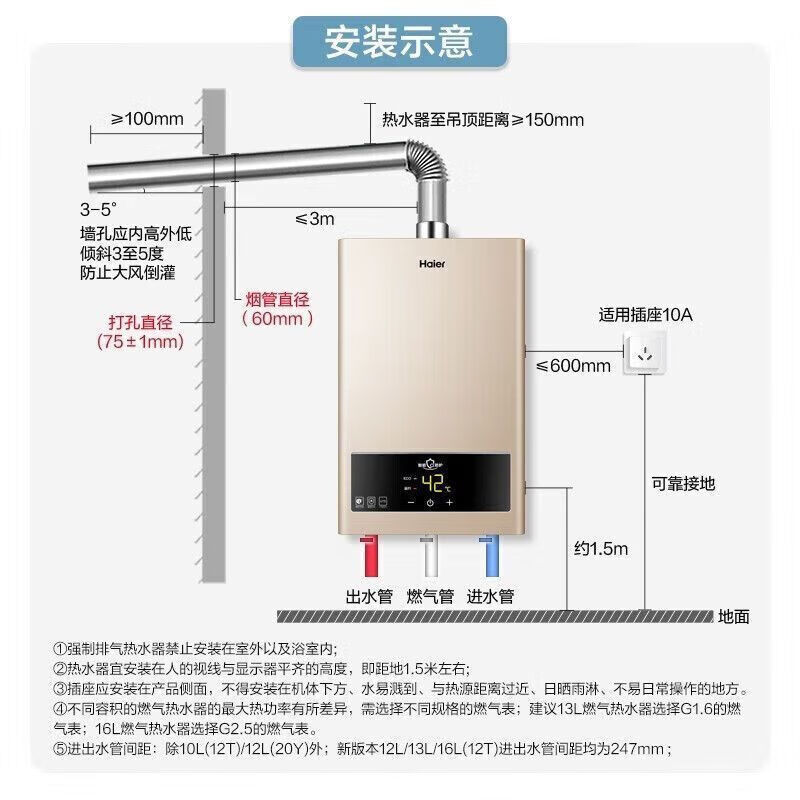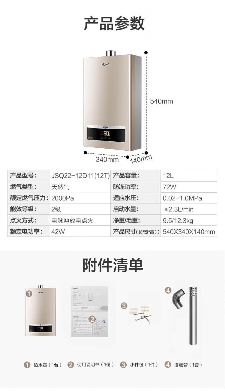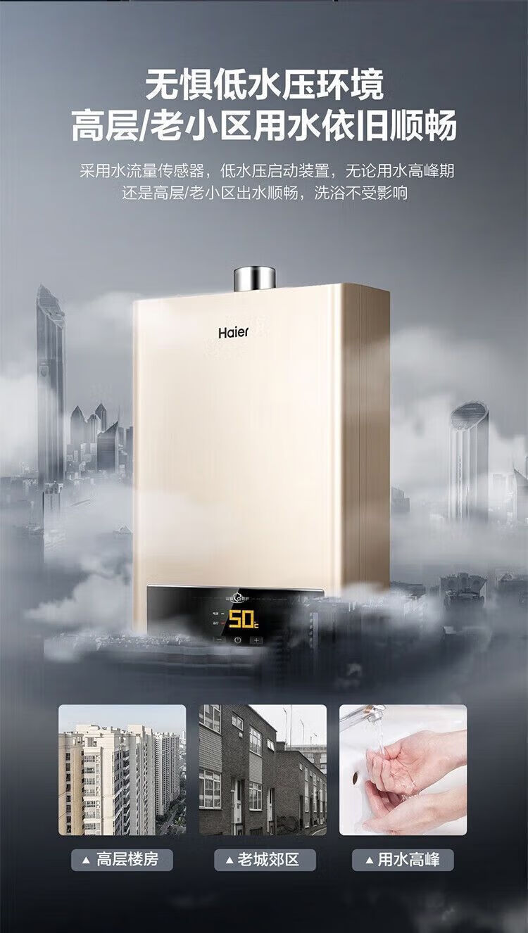 海尔燃气热水器天然气12升家用洗澡强排式水气双调ECO节能恒温