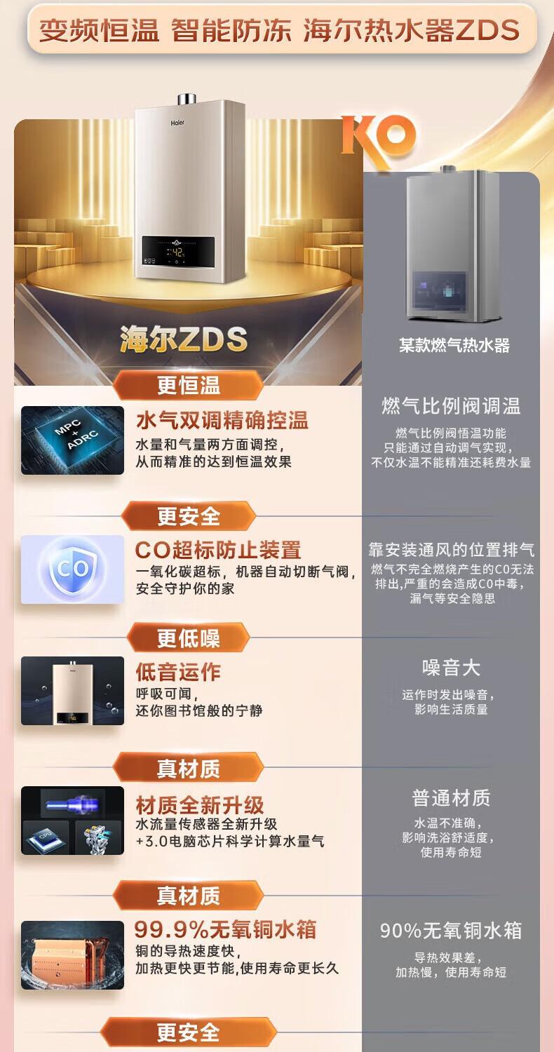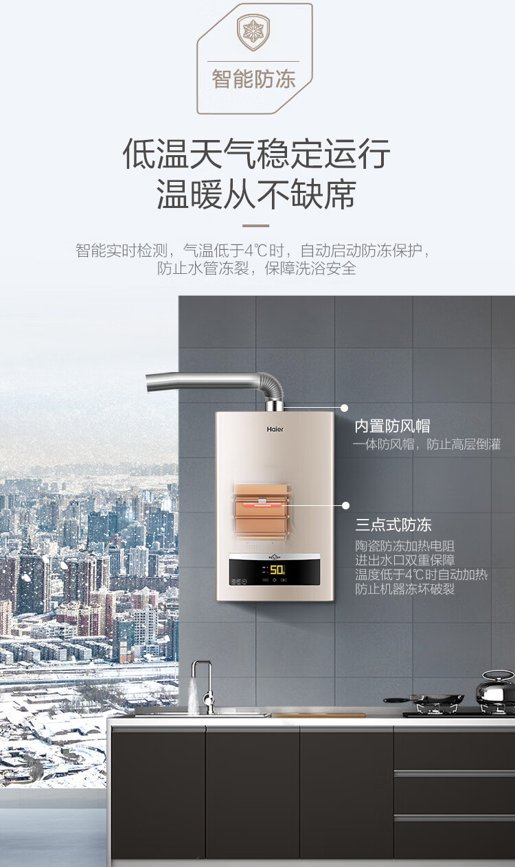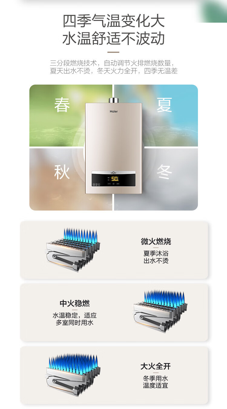 海尔燃气热水器13升家用天然气强排式恒温变频JSQ25-13ZDS(12T)