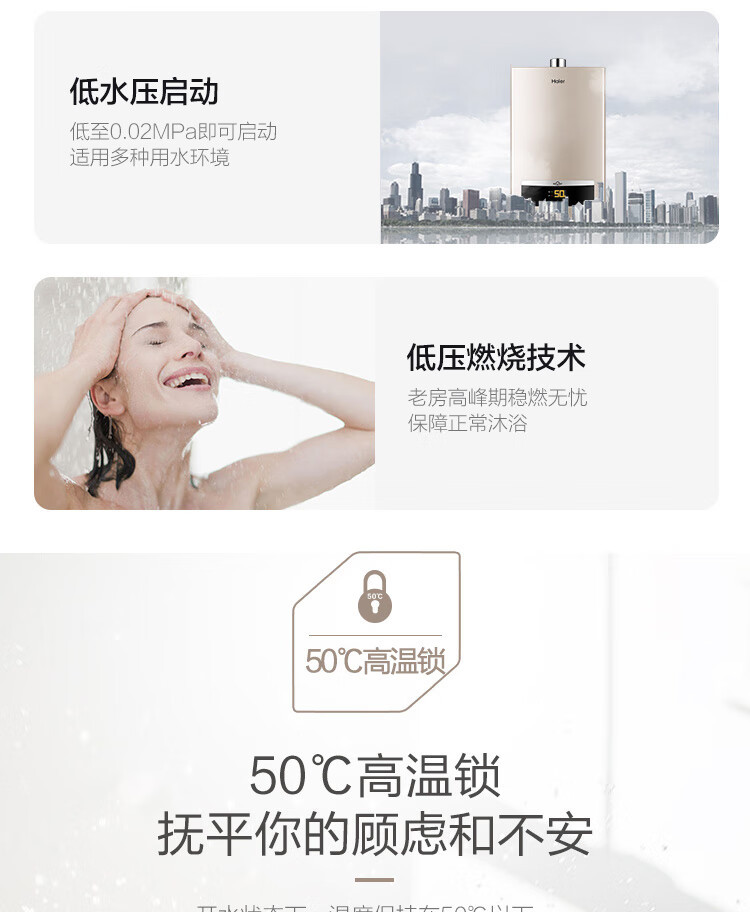 海尔燃气热水器WG3天然气家用洗澡强排式水气双调智能防冻ECO节能