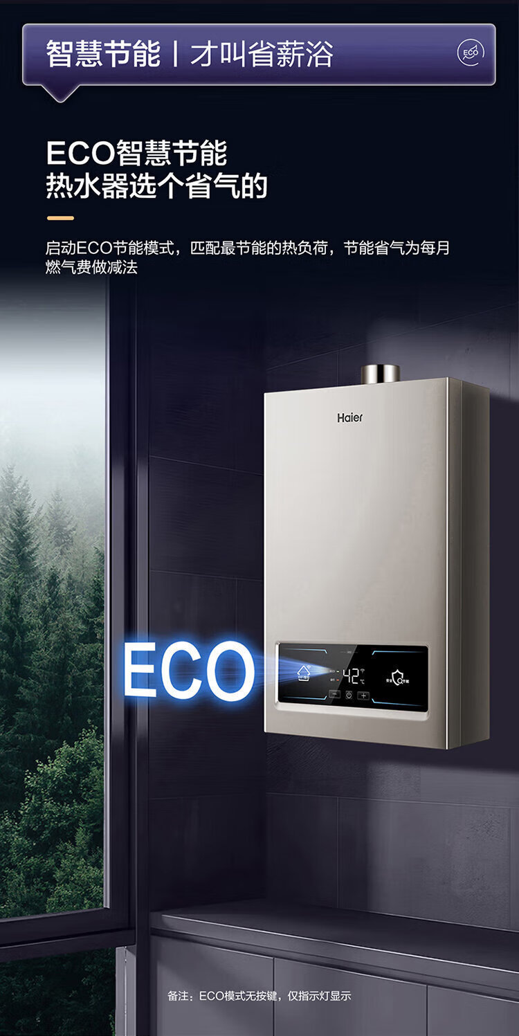 海尔燃气热水器天然气12升家用洗澡强排式水气双调ECO节能恒温