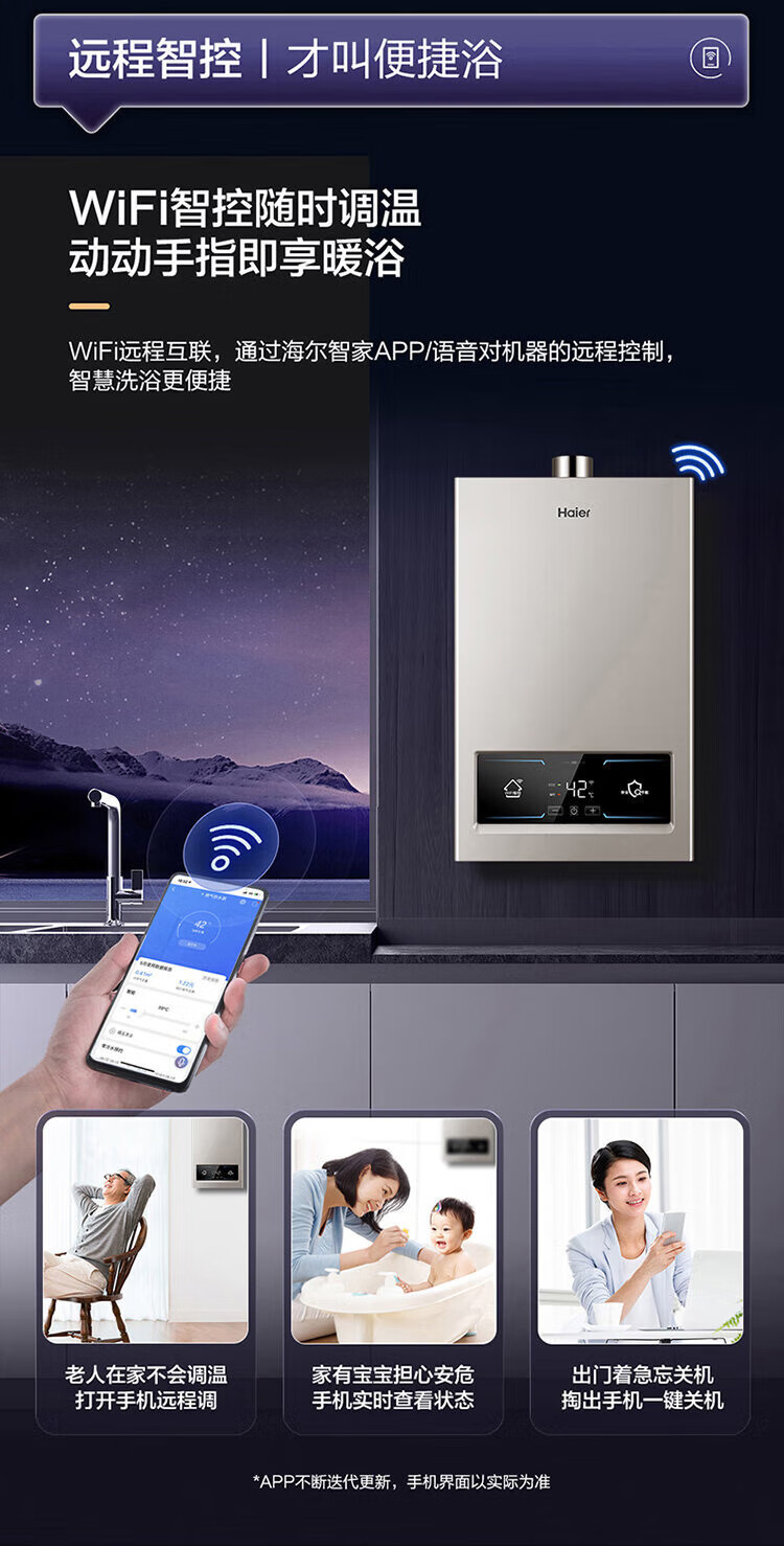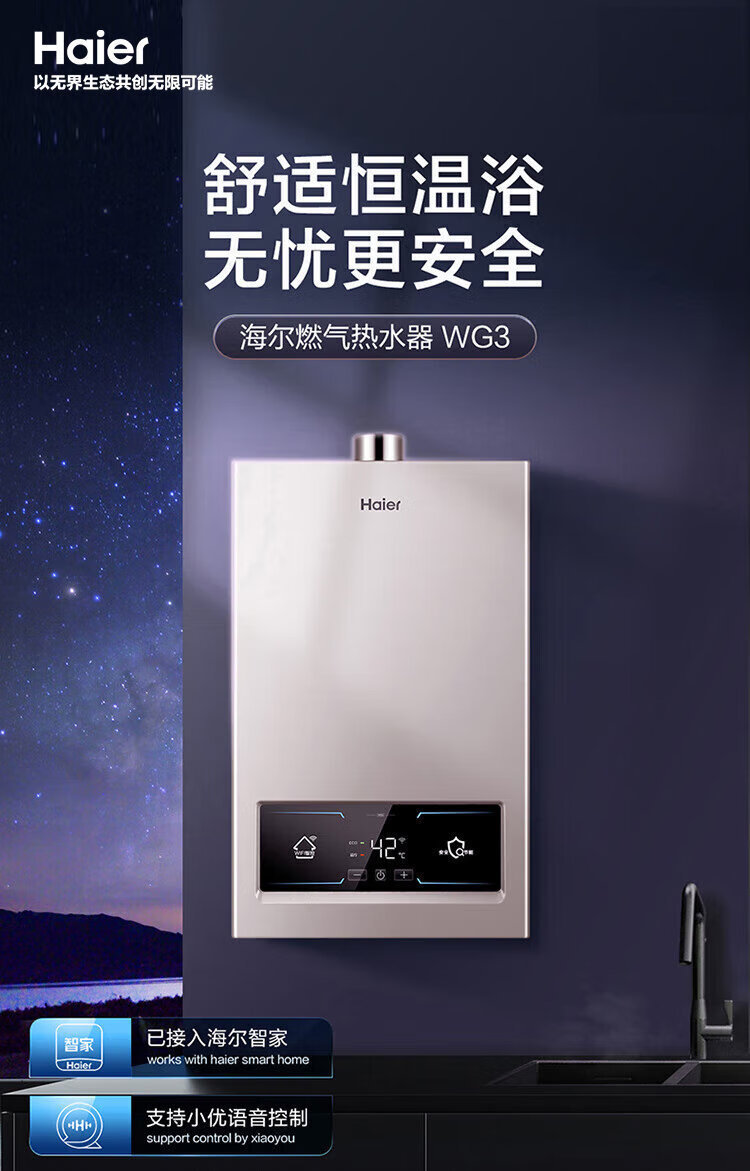 海尔燃气热水器WG3天然气家用洗澡强排式水气双调智能防冻ECO节能