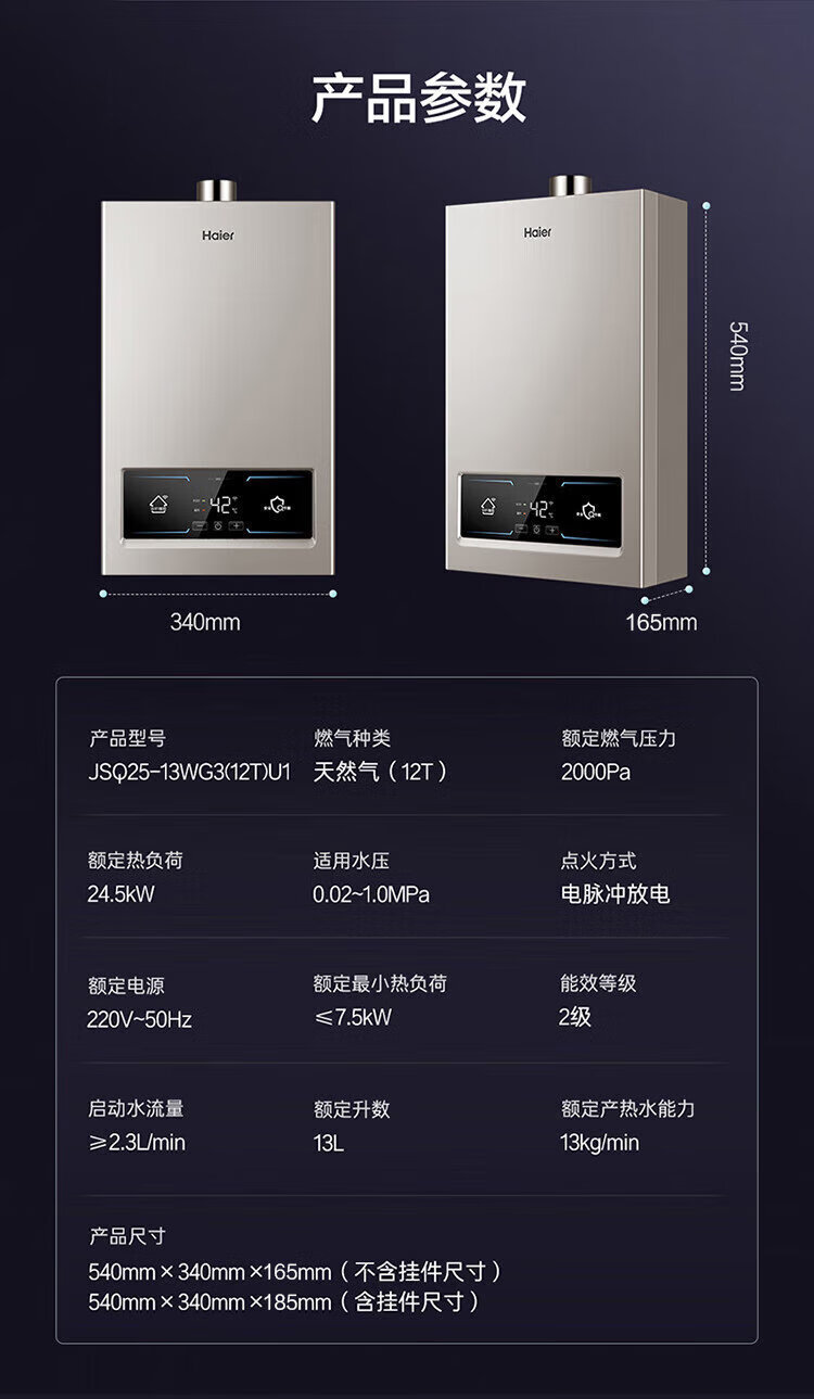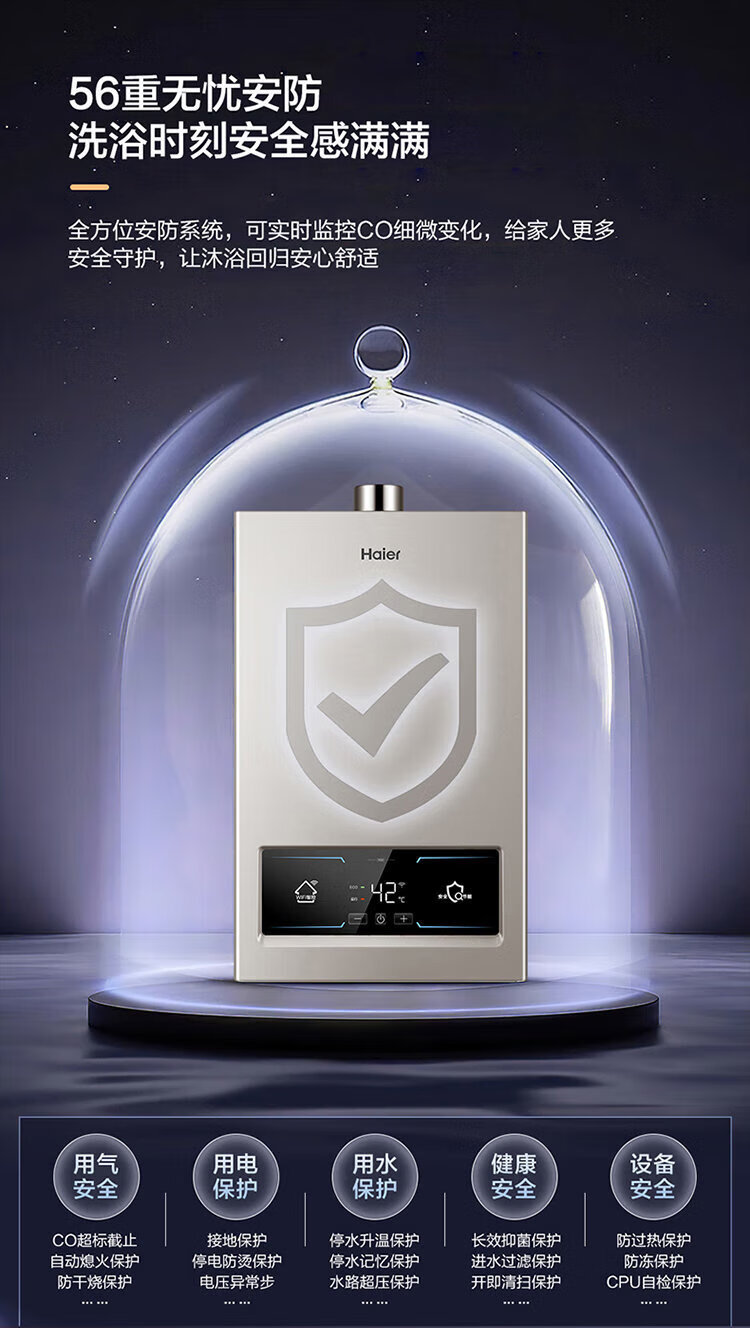 海尔燃气热水器13升家用天然气强排式恒温变频JSQ25-13ZDS(12T)