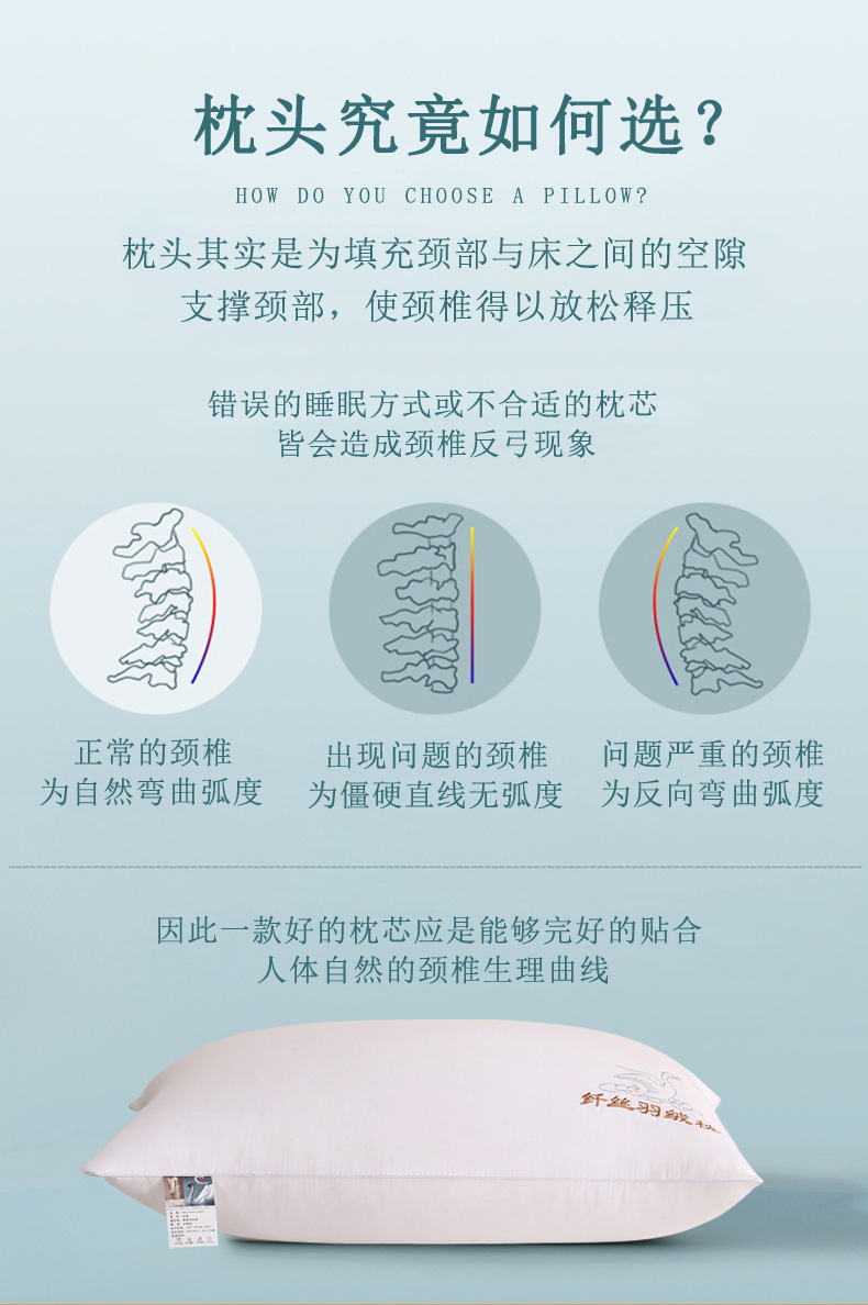 【央视播出】女王分区支撑复合白鹅绒枕头枕芯 48*74cm 低枕护颈