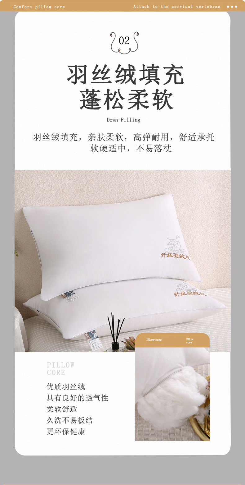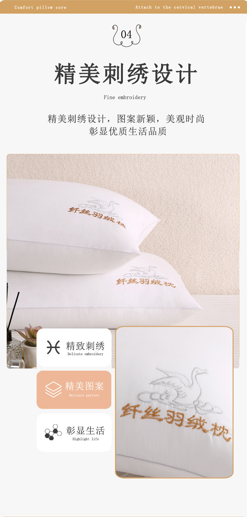 厂家直销纯棉酒店风枕头超柔羽丝绒枕头全棉刺绣枕头枕芯