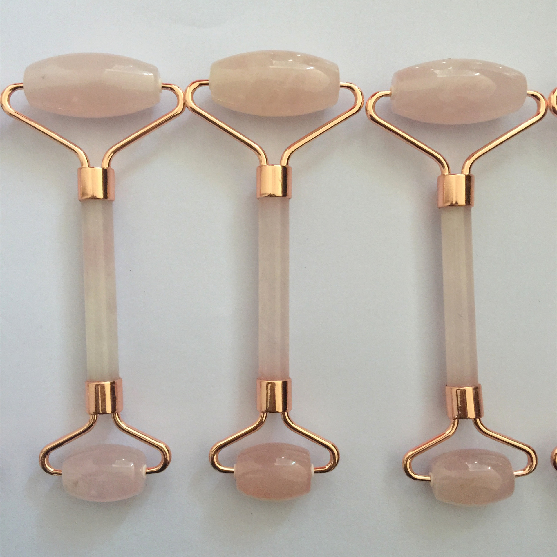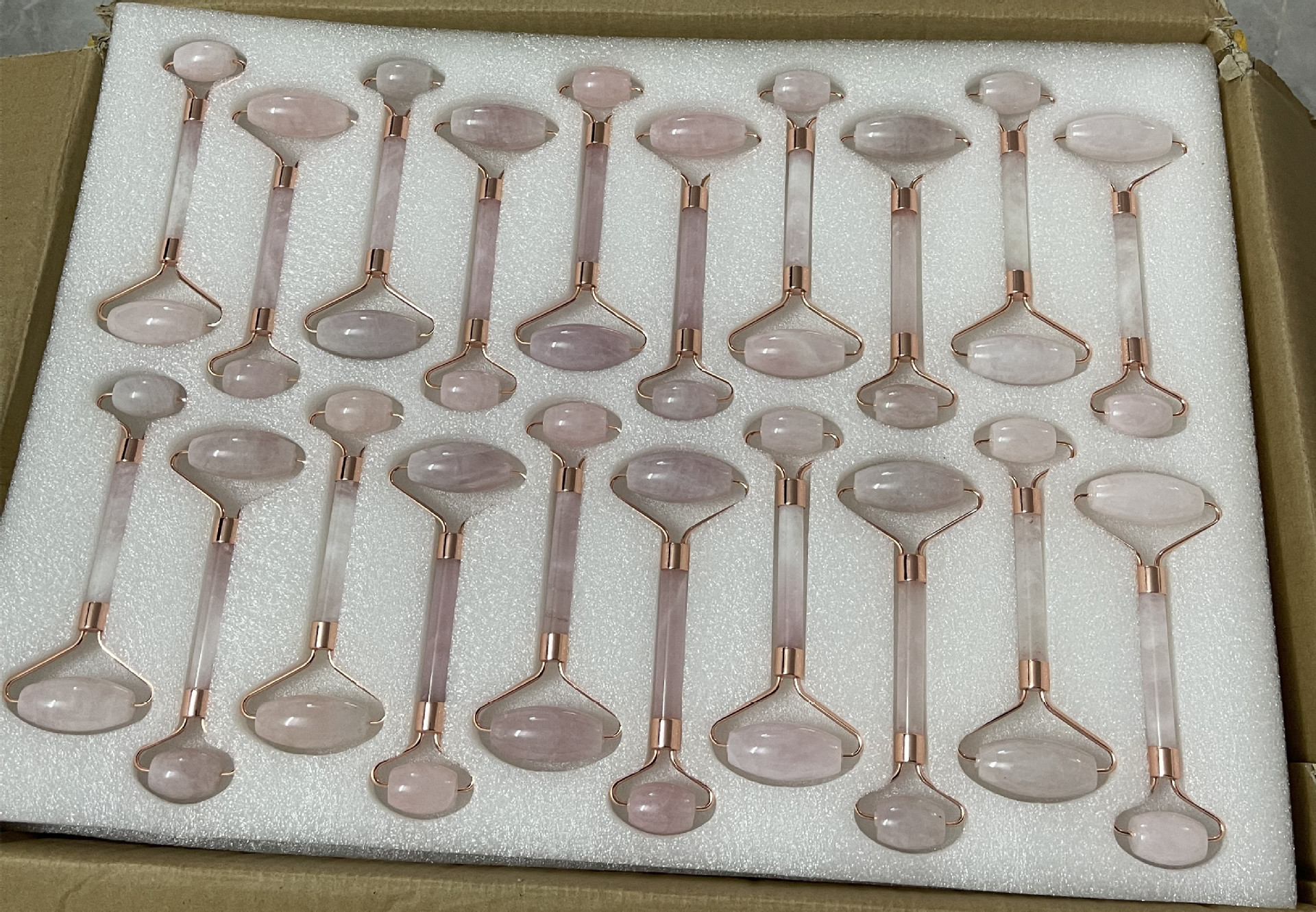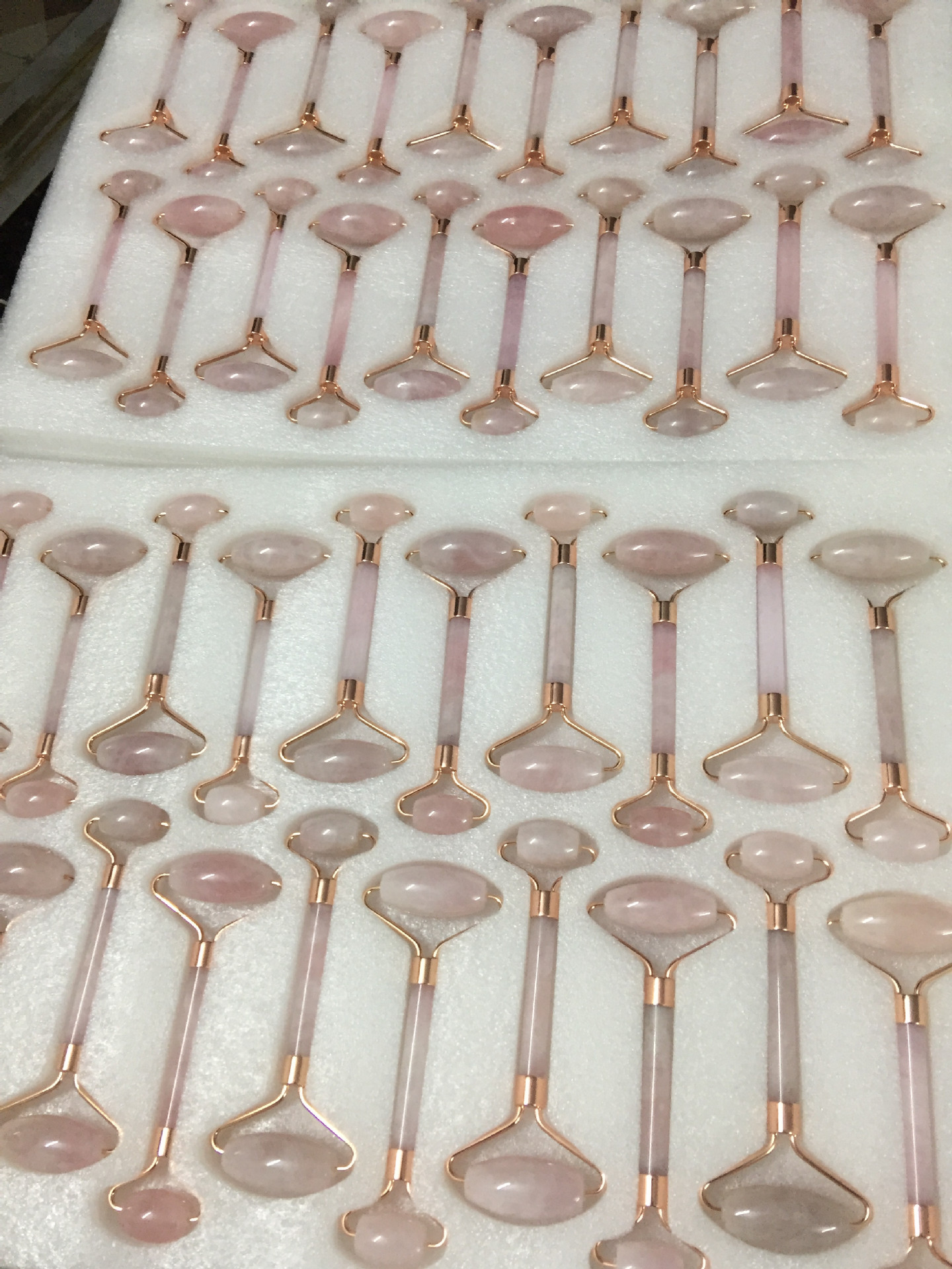 现货供应岫岩玉滚轮南方玉刮痧水晶板精油按摩棒双头粉晶玉石滚轮