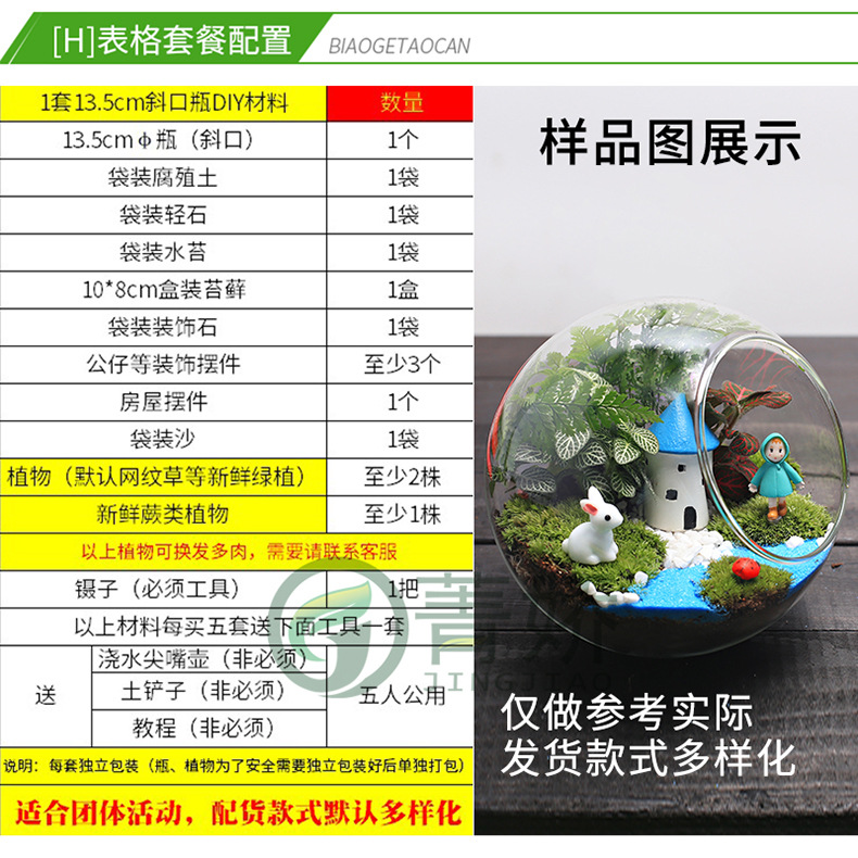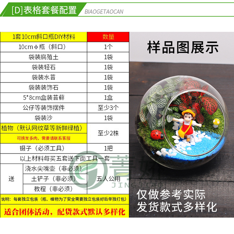 多肉苔藓微景观DIY材料包 生态玻璃瓶球桌面绿植物花卉小盆栽组合