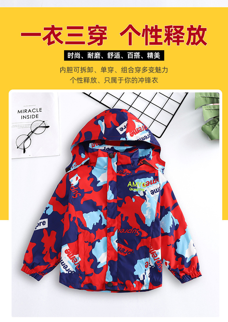 童装冬装外套三合一冲锋衣2022儿童中大童加绒加厚户外上衣男孩