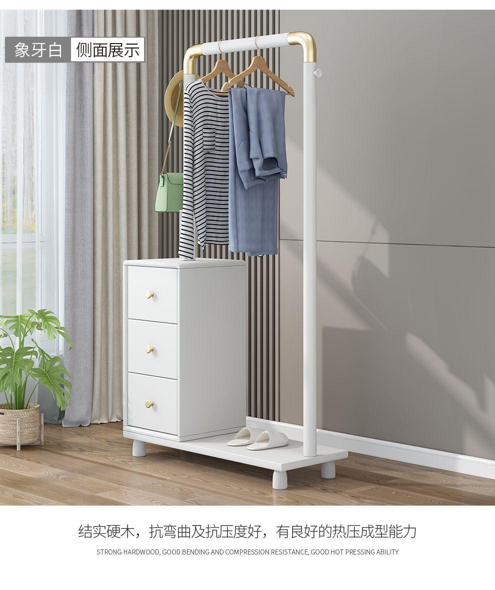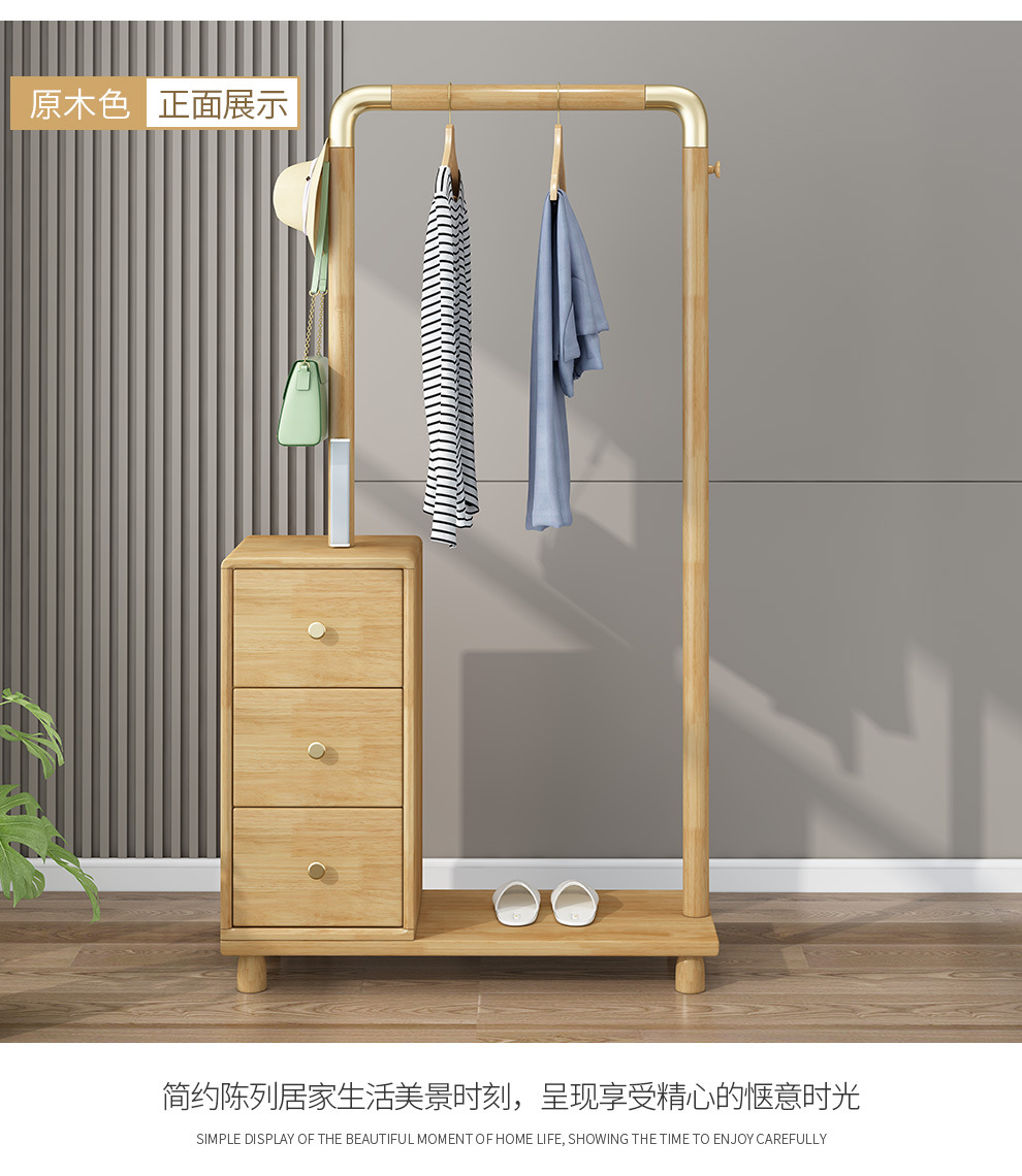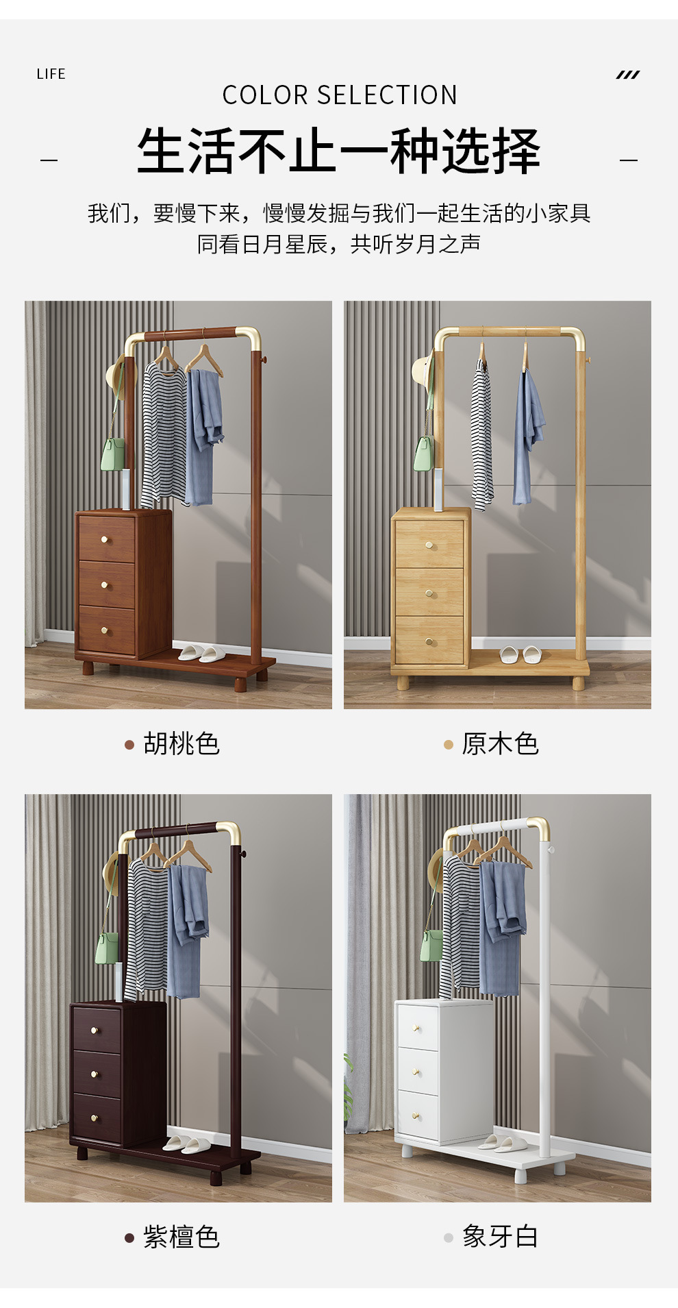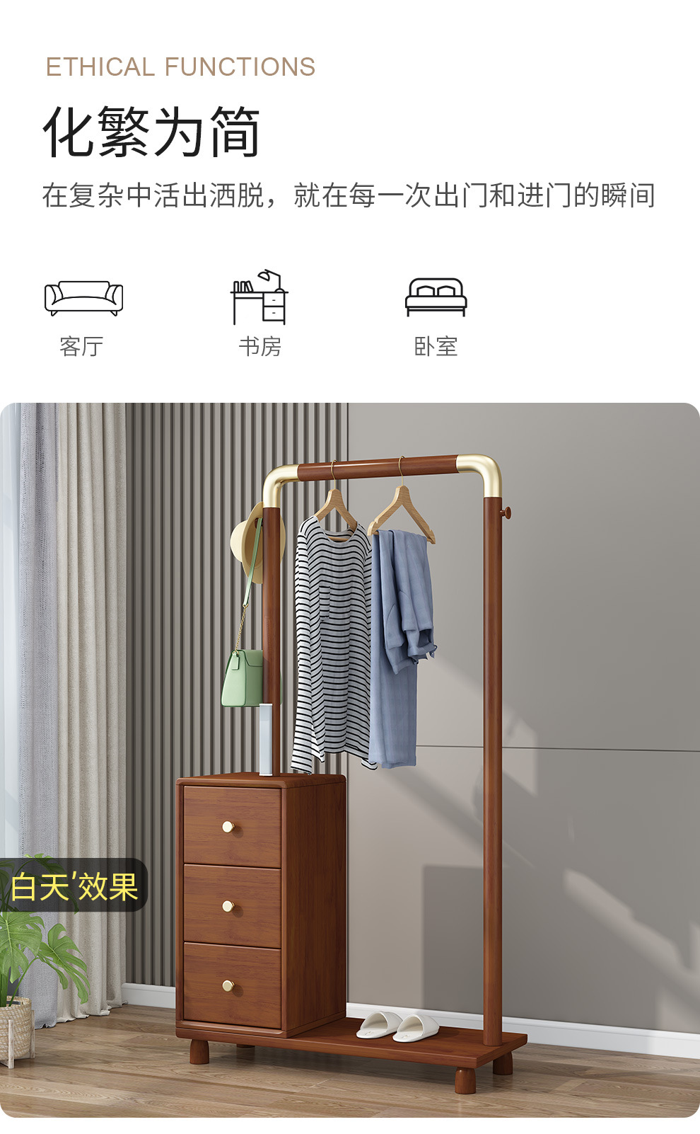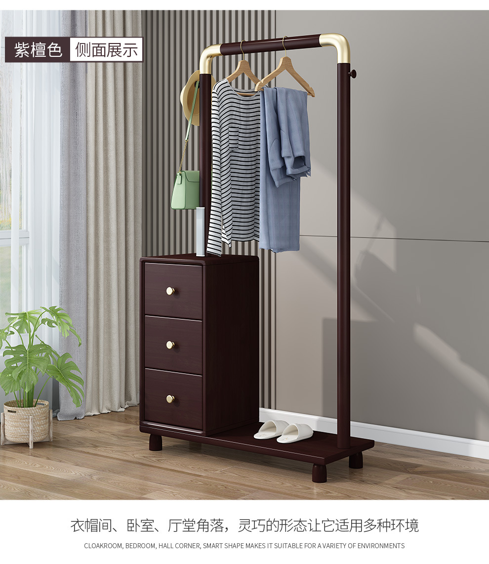 新中式实木衣帽架现代简约带抽屉卧室晾衣架落地储物置物架带夜灯