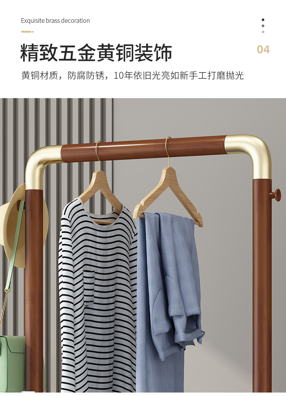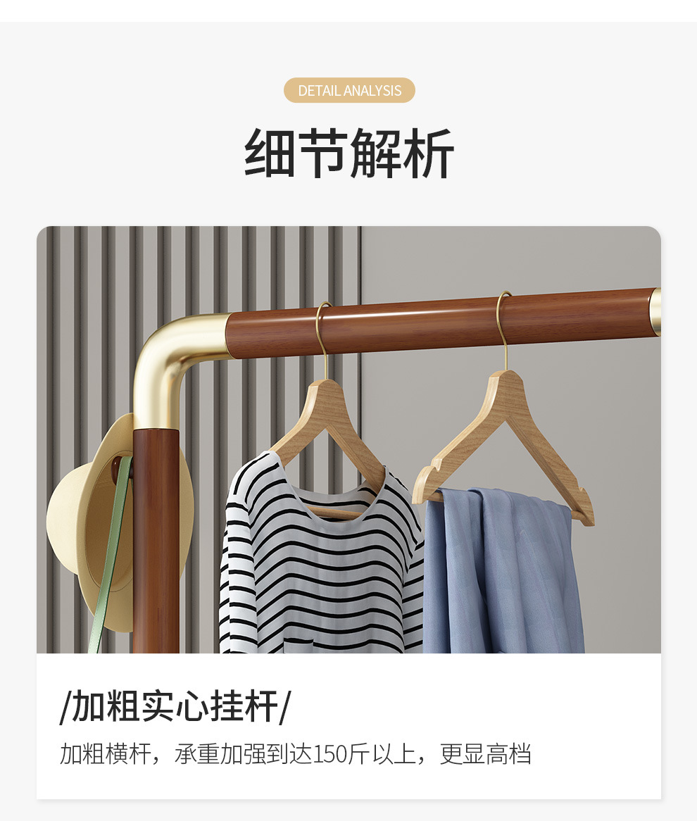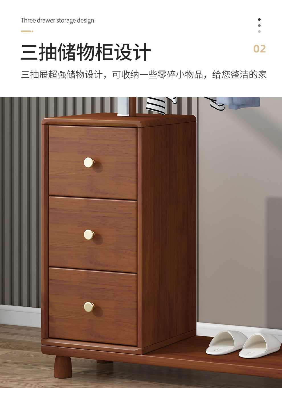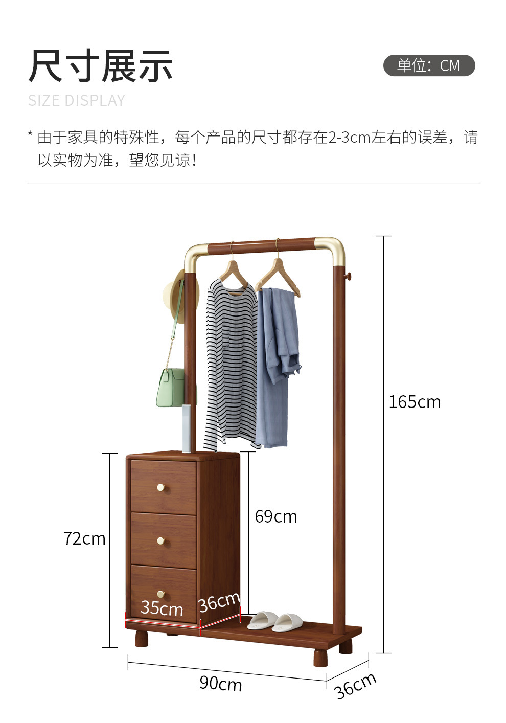 新中式实木衣帽架现代简约带抽屉卧室晾衣架落地储物置物架带夜灯