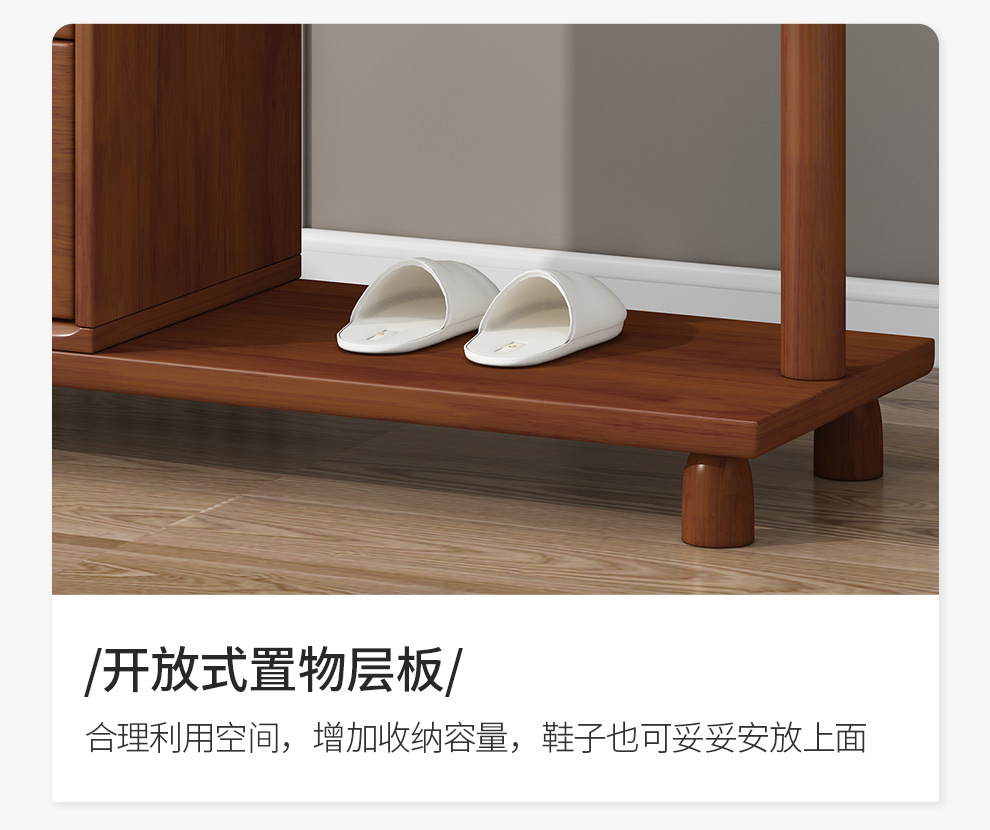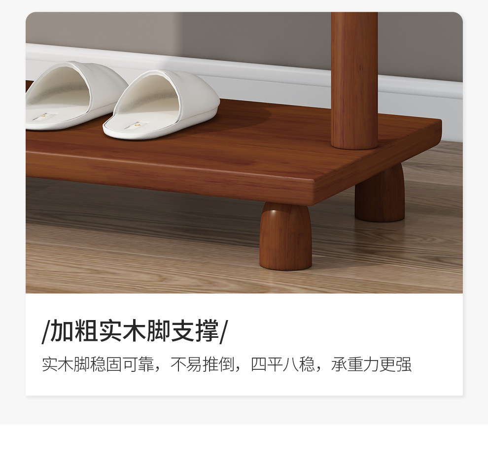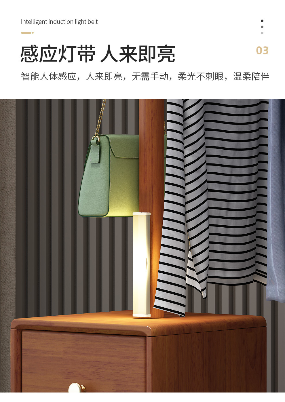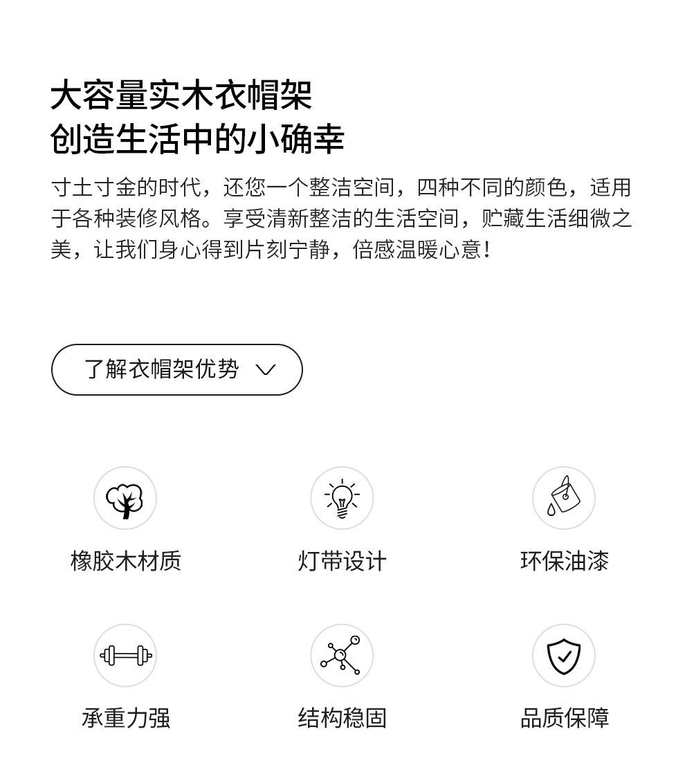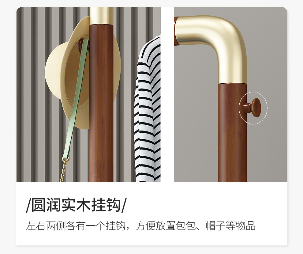 新中式实木衣帽架现代简约带抽屉卧室晾衣架落地储物置物架带夜灯