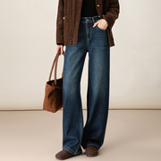 鑫阁加绒深蓝色长直筒牛仔裤女2025冬季新款宽松显瘦窄版阔腿裤子