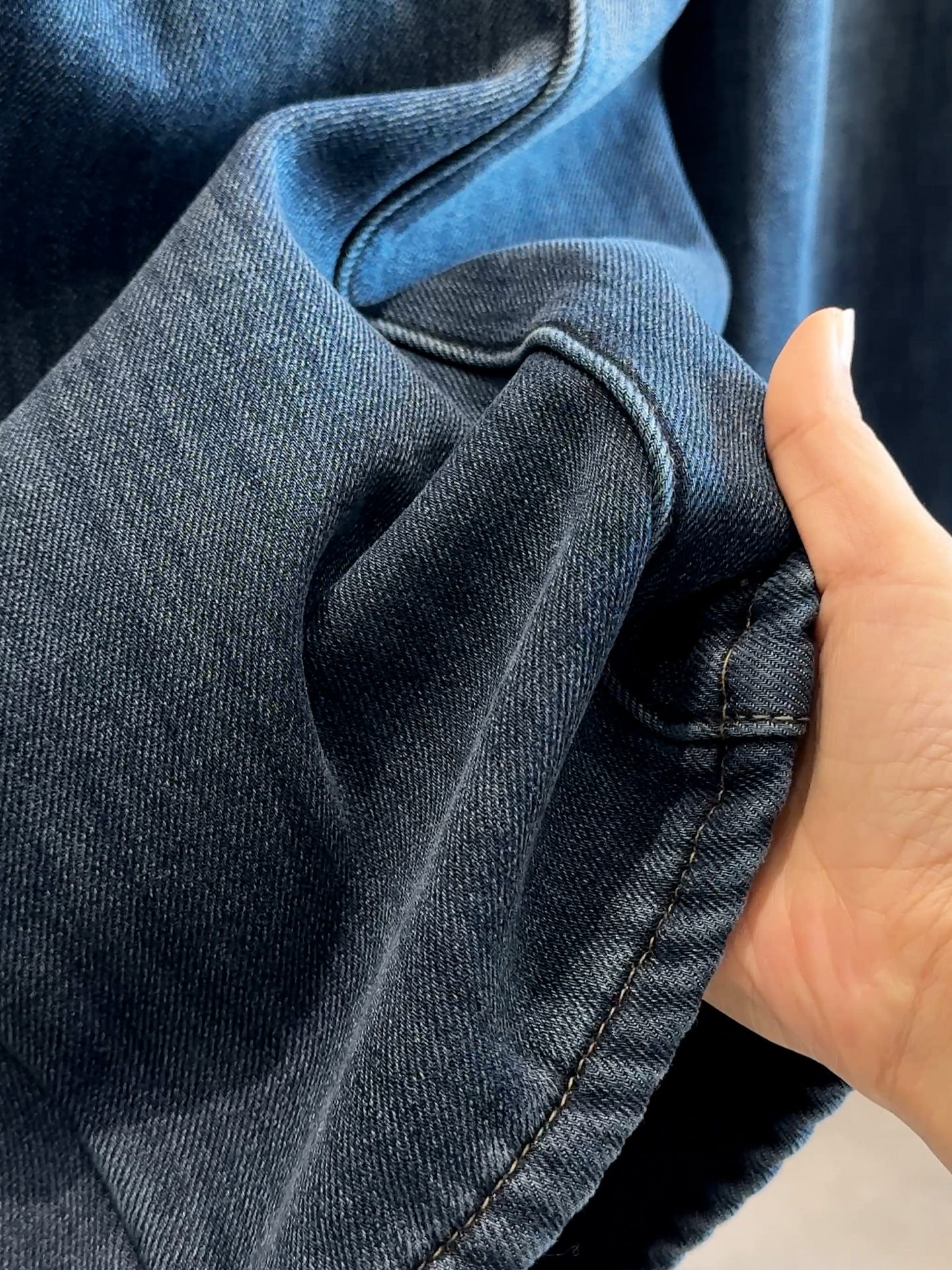 春夏薄款牛仔裤女宽松松紧腰弹力妈妈休闲高腰中老年加绒深色女裤