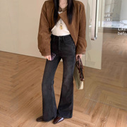 美式复古辣妹牛仔裤女2025年秋新款低腰弹力百搭双扣弹力微喇叭裤