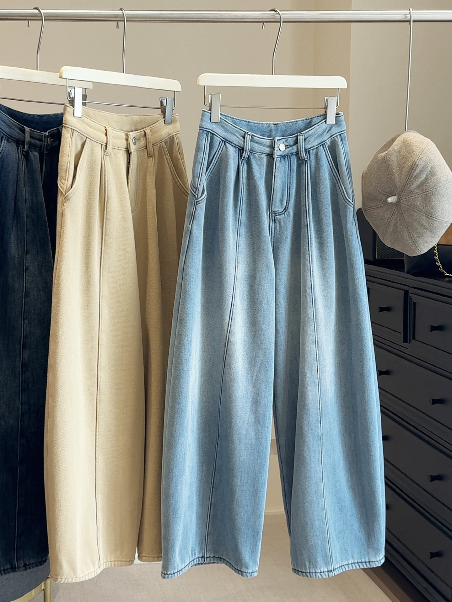 2516中性通勤阔腿牛仔裤女春秋高腰显瘦设计感宽松百搭拖地牛仔裤