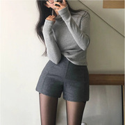 灰色毛呢短裤女冬季2024显瘦韩版修身包臀呢子靴裤高腰打底三分裤