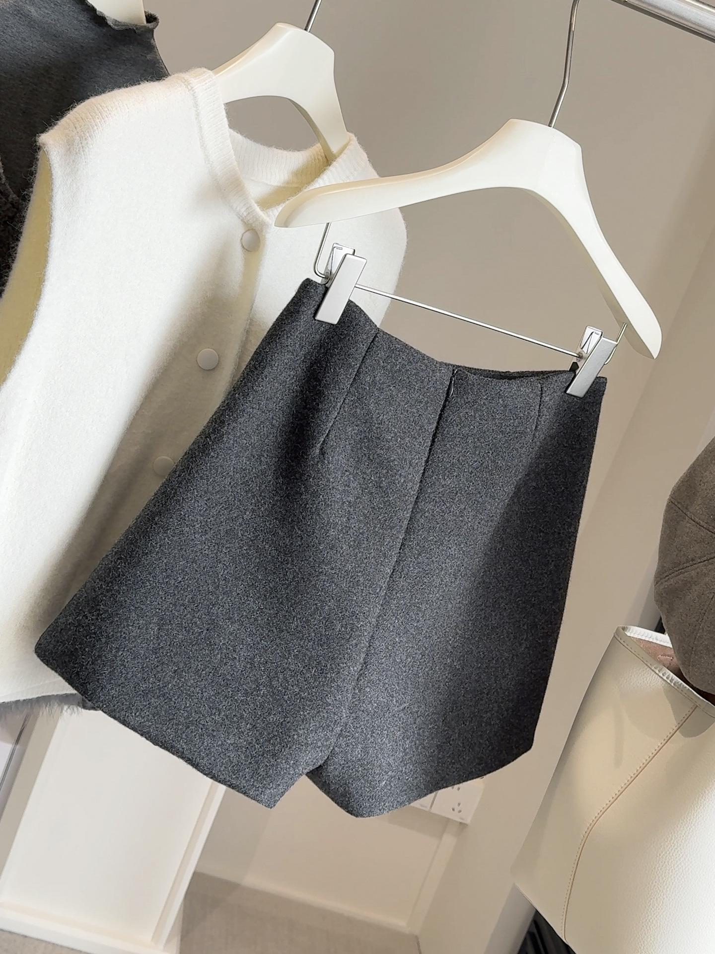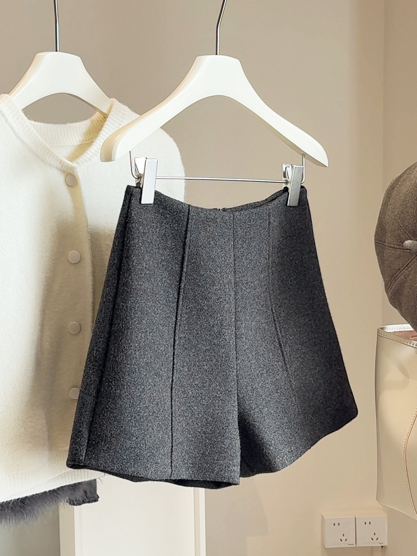 灰色气质西装毛呢短裤女2025秋冬新款外穿高腰显瘦A字阔腿靴裤子