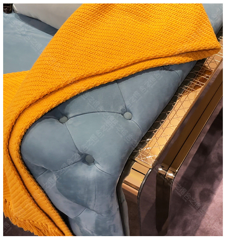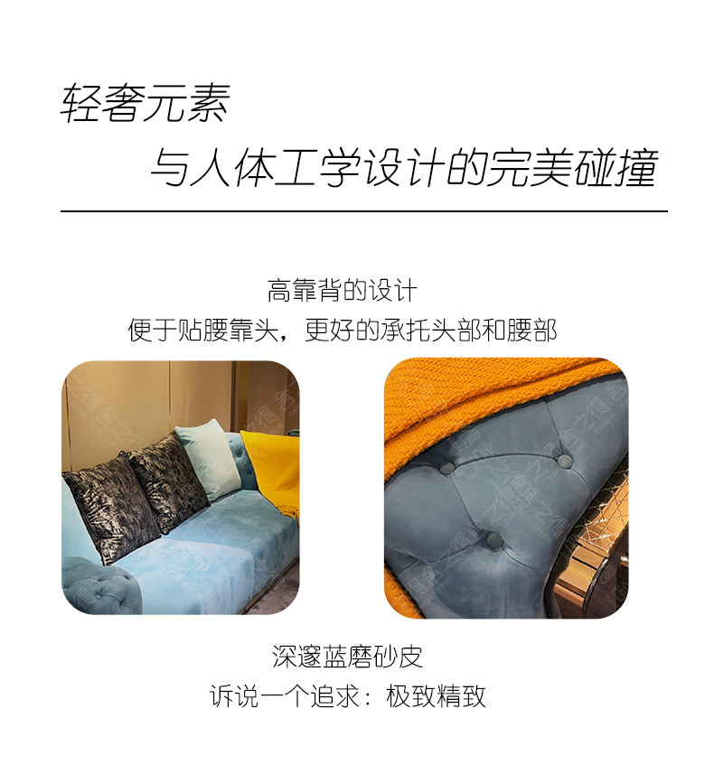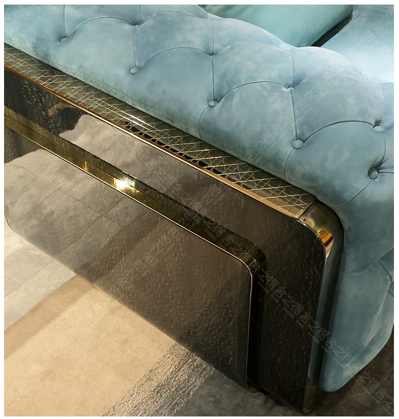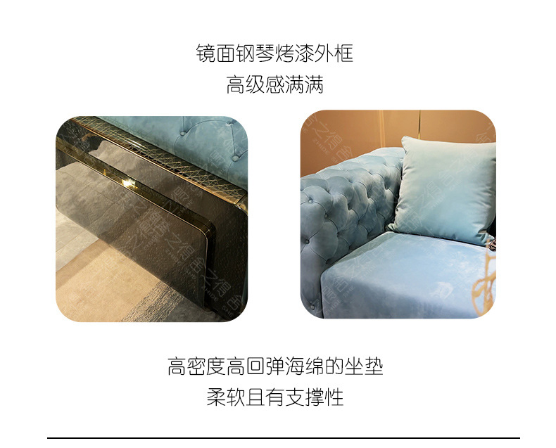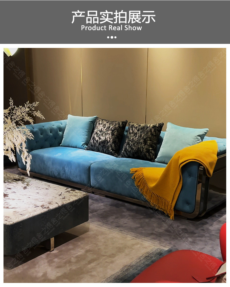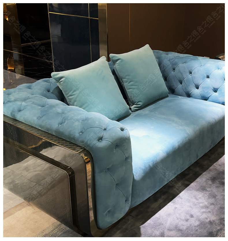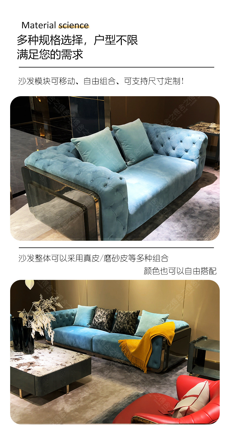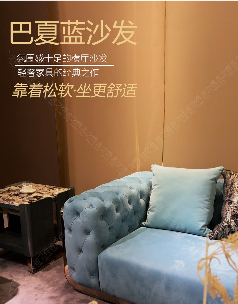 舍之得意大利轻奢巴夏SOFA深邃蓝钛金条磨砂真皮高端豪宅别墅沙发