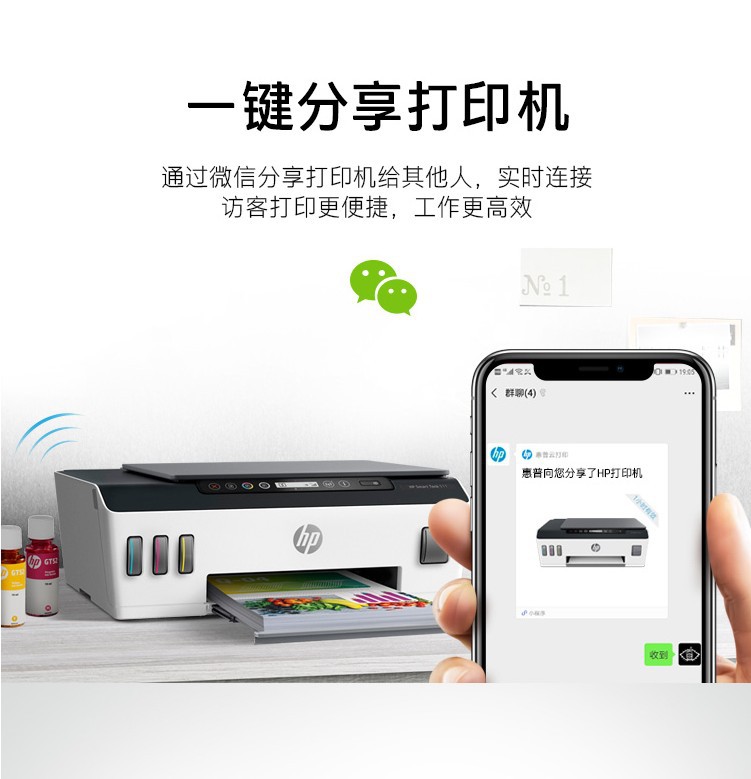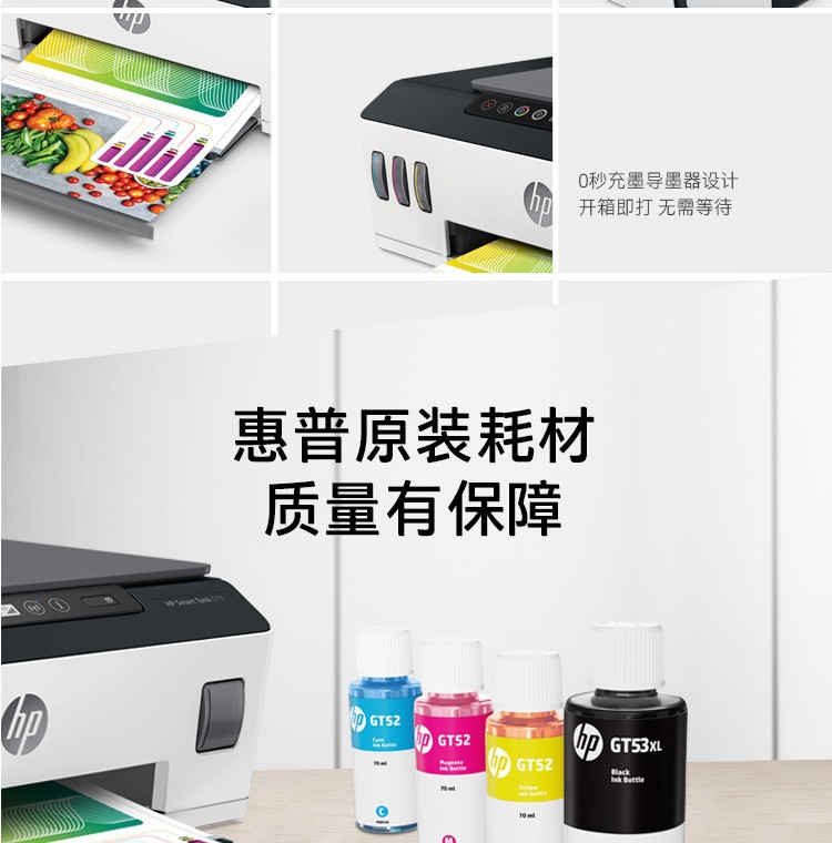 惠普原装墨仓式连供打印机多功能无线手机彩色打印复印扫描可加墨