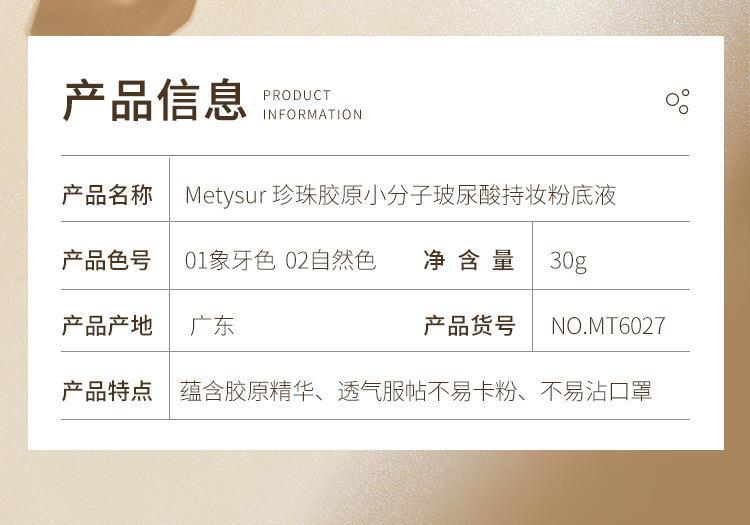 美媞秀珍珠胶原小分子玻尿酸持妆粉底液保湿控油防水持妆养肤粉底