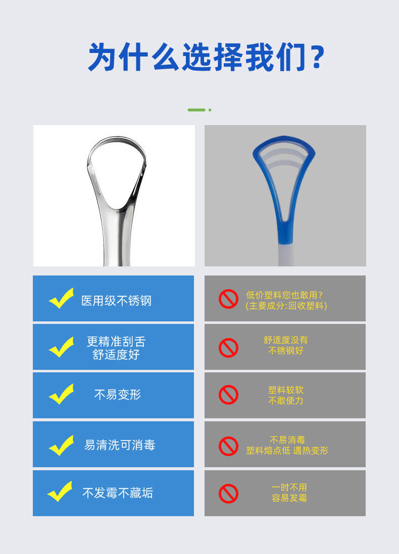 不锈钢舌苔清洁器刮舌器去除口腔异味清洁口腔刮板刮舌板男女适用