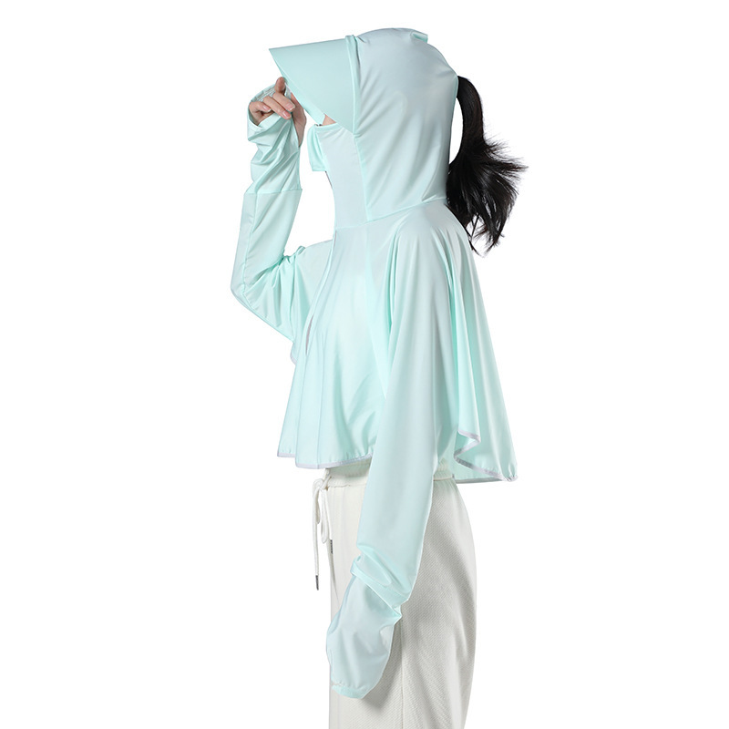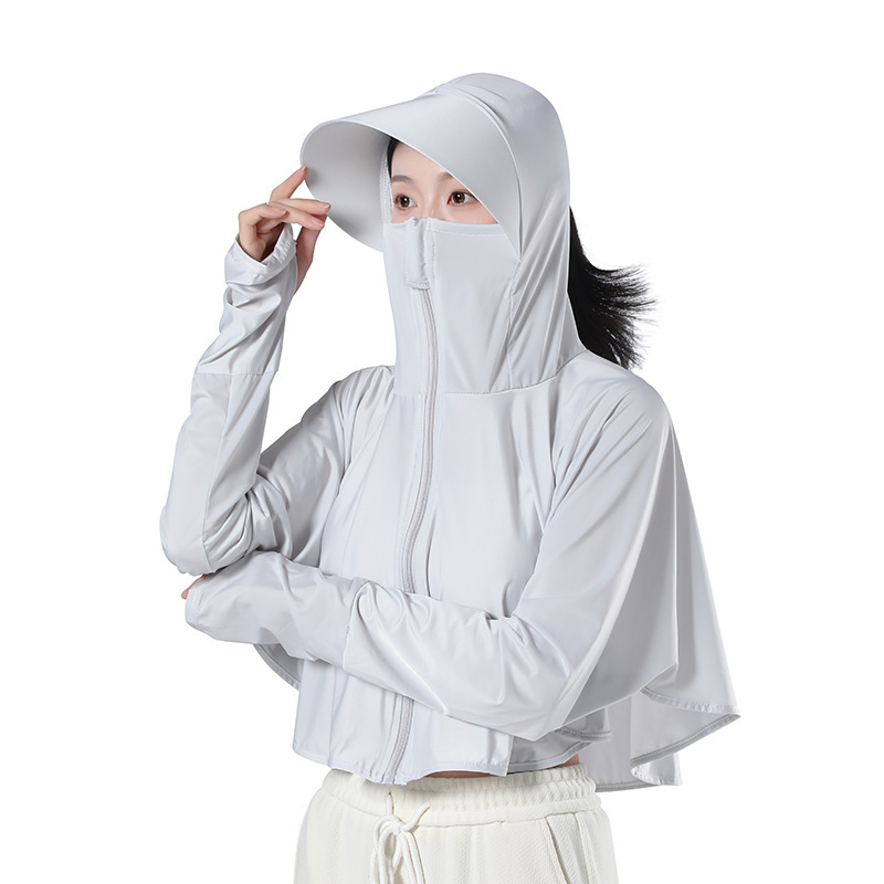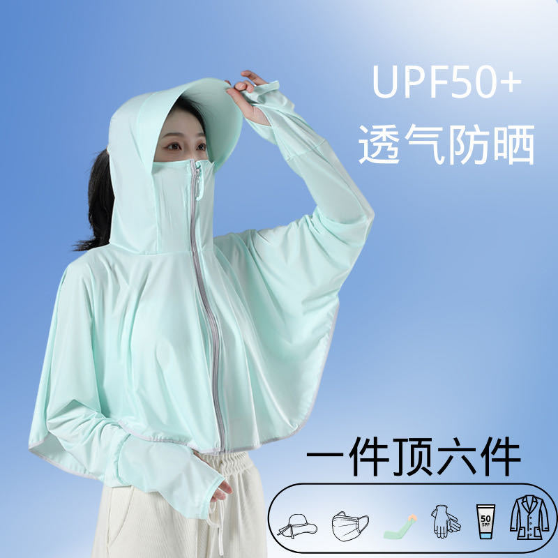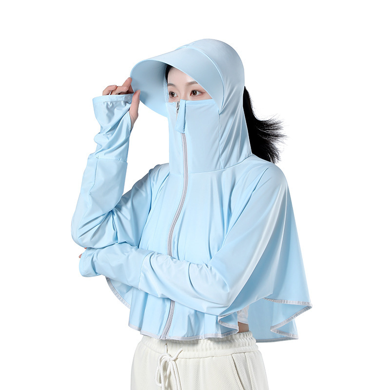 夏季爆款冰丝防晒衣女士超轻透气防紫外线骑行防晒服斗篷款防晒衫