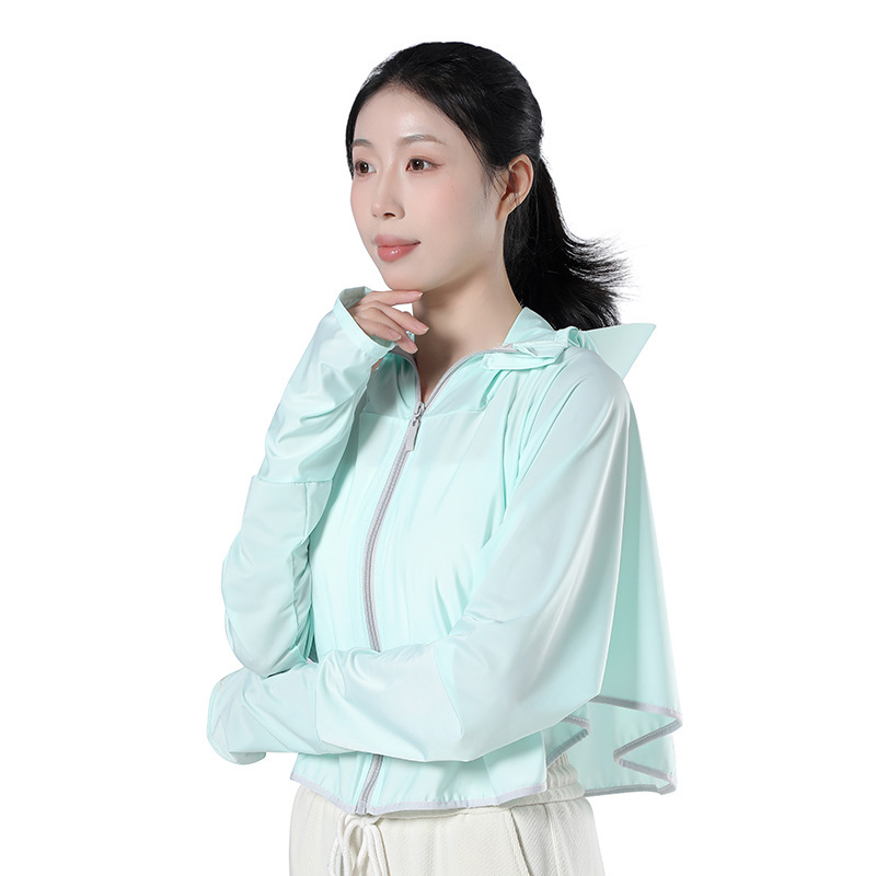 UPF50+冰丝修身显瘦连帽防晒衣女士轻薄运动拉链防晒服开衫短外套