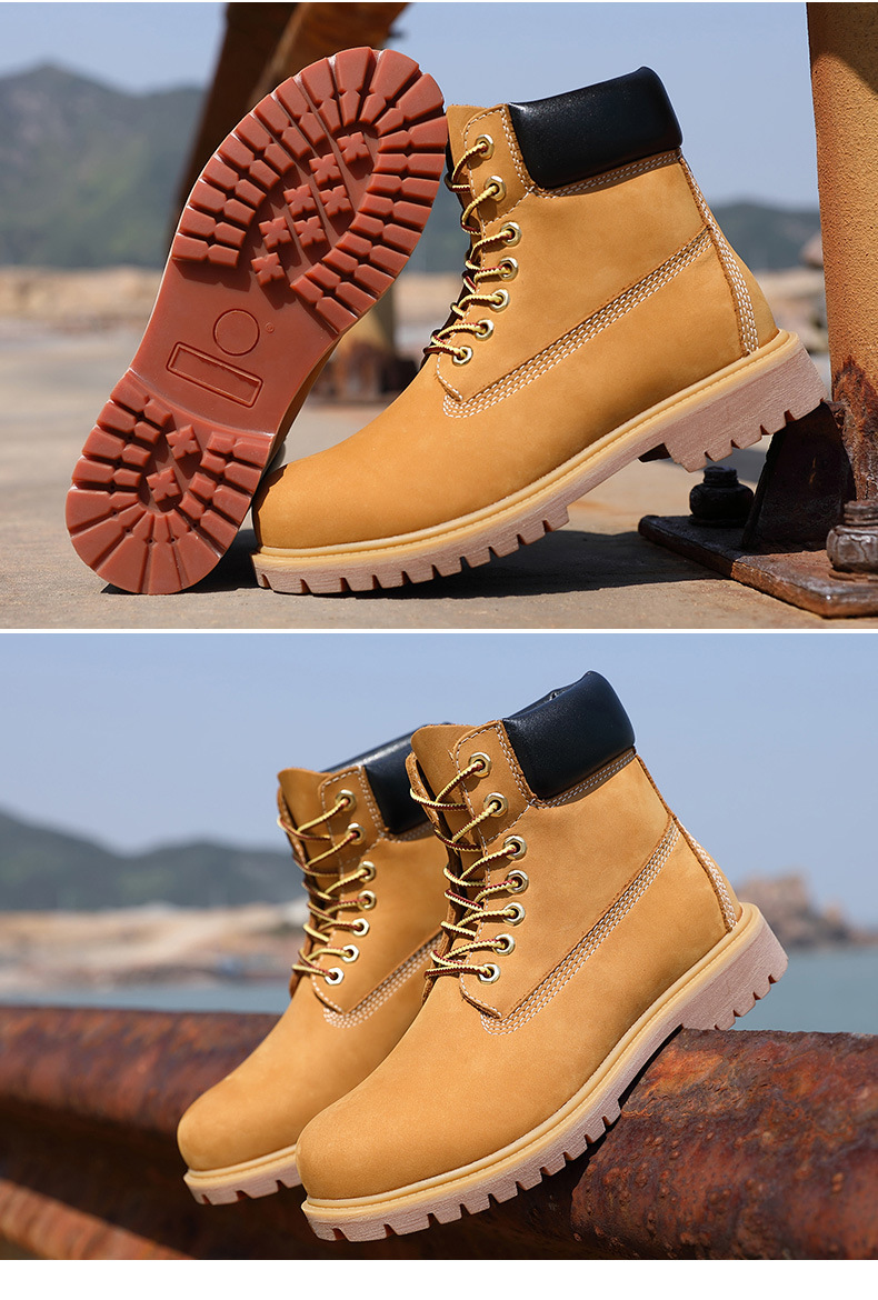 秋冬款高帮工装大黄靴防水网红男女同款马丁靴头层牛皮情侣鞋防滑