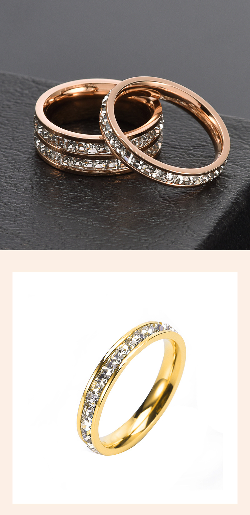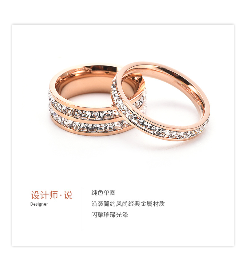 轻奢高级男女满天星戒指 单双圈钛钢不掉色镶钻情侣对戒热销现货