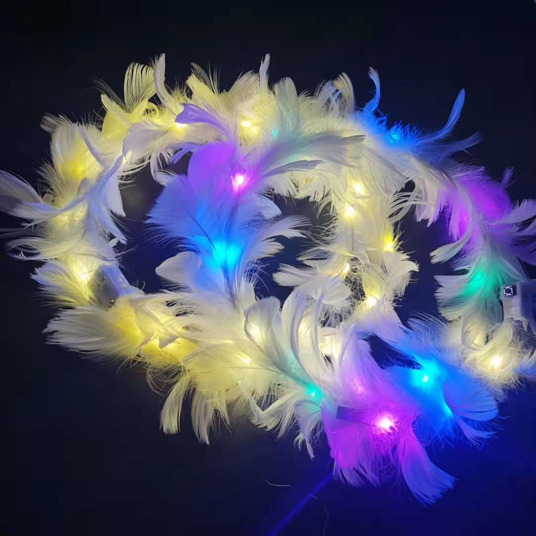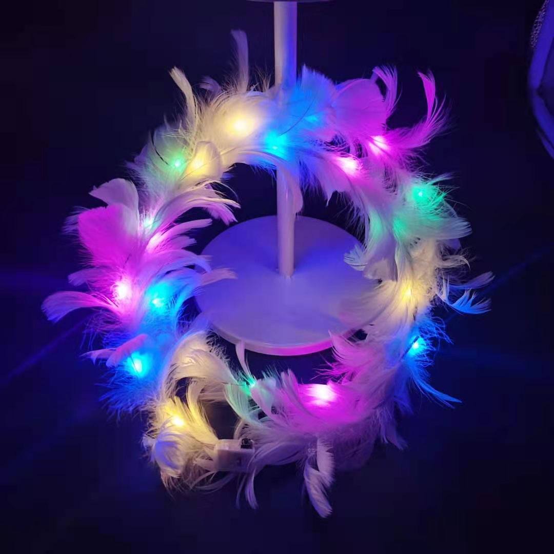 跨境热卖14灯毛毛兔耳朵发光发箍地推金丝羽毛猫耳朵发光头箍玩具